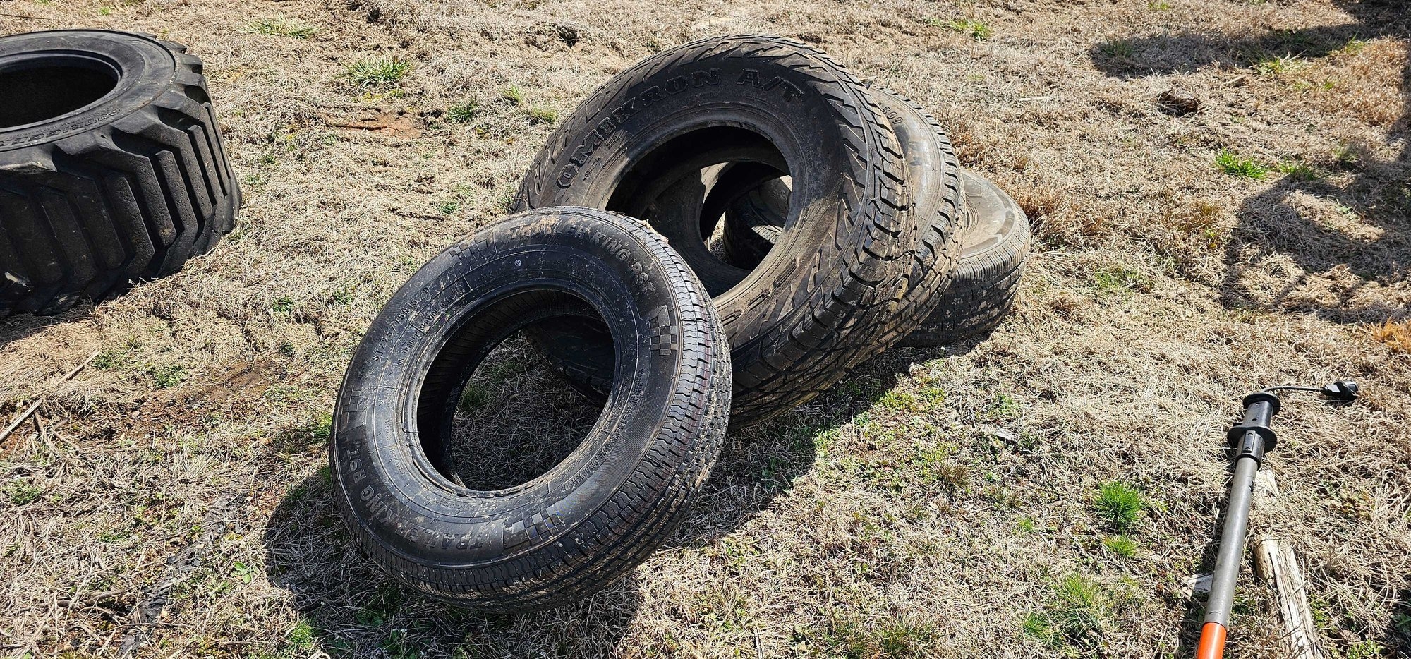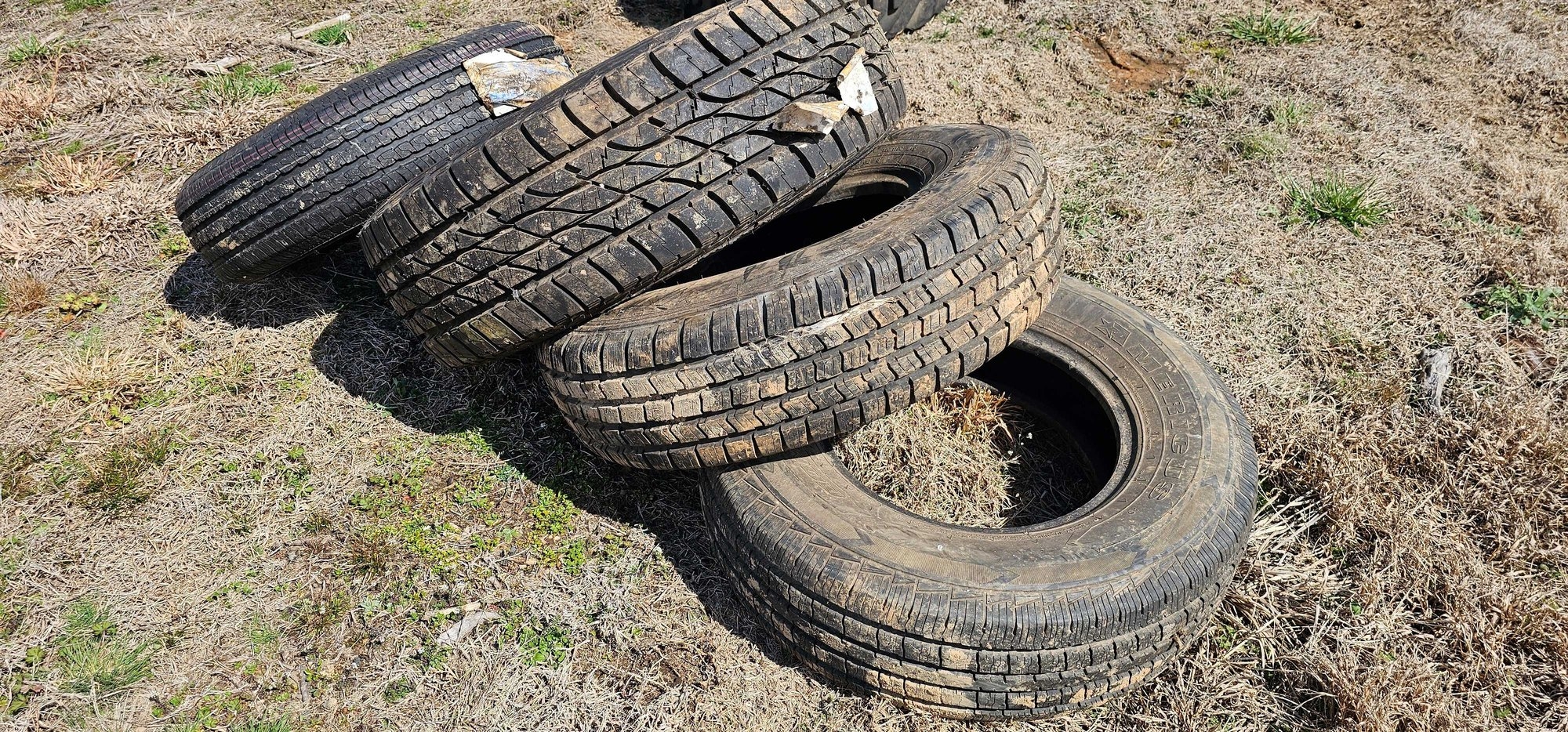 (4) ASSORTED TIRES 3 ARE IN GOOD CONDITION 1 HAS A PLUG IN IT (1) 245/75/16 HAS A PLUG IN IT (1) 235/85/16 (1) 285/75/17 (1) 225/75/15 TRAILER TIRE