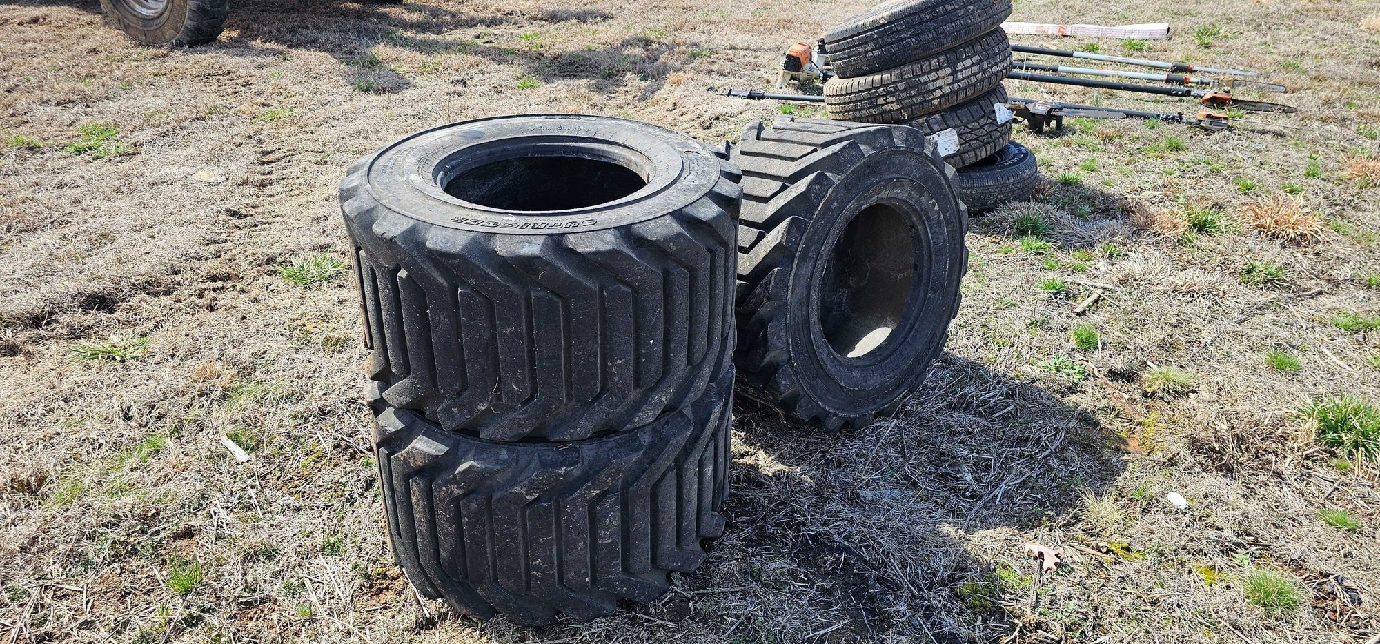 (4) RUBBER TIRE LOADER TIRES 33X15.5-16.5