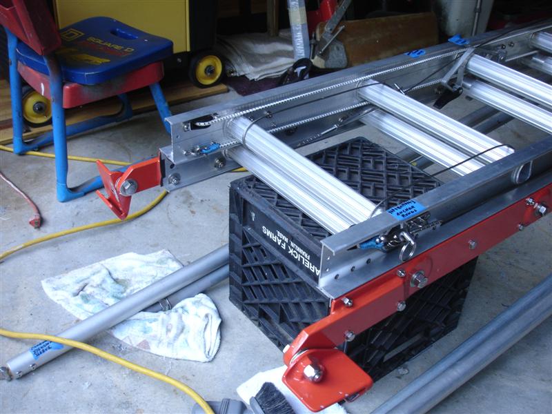 I'm thinking of making a frame with a "pocket" for the ladder to lift and lower it. I would plan on lowering the ladder to 20ft when moving it around. I'm also thinking that the attachment would be a good way to stabilize the base when I'm up the ladder.
