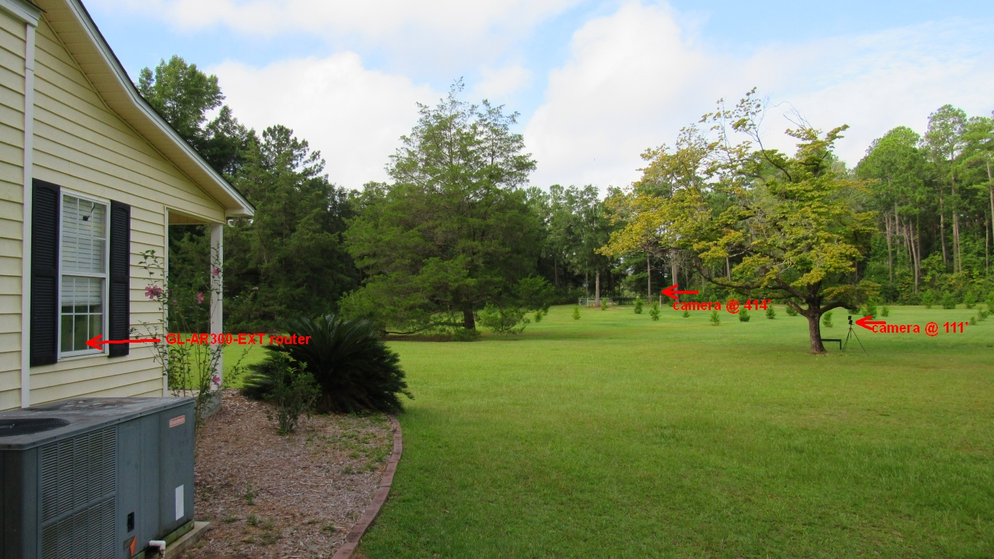 I have 4 Reolink wifi cameras and a Wyze cam on the network. The furthest camera is a Reolink Argus Eco at 414’ from the router window. The next closest is the Wyze cam at 198’ in the barn. The Wyze Cam has to shoot it's signal through the whole house. I also have a Argus Eco at 111’ out front. The other two cameras are Reolink RLC411WS and a Reolink RLC410W on the front and back porches.