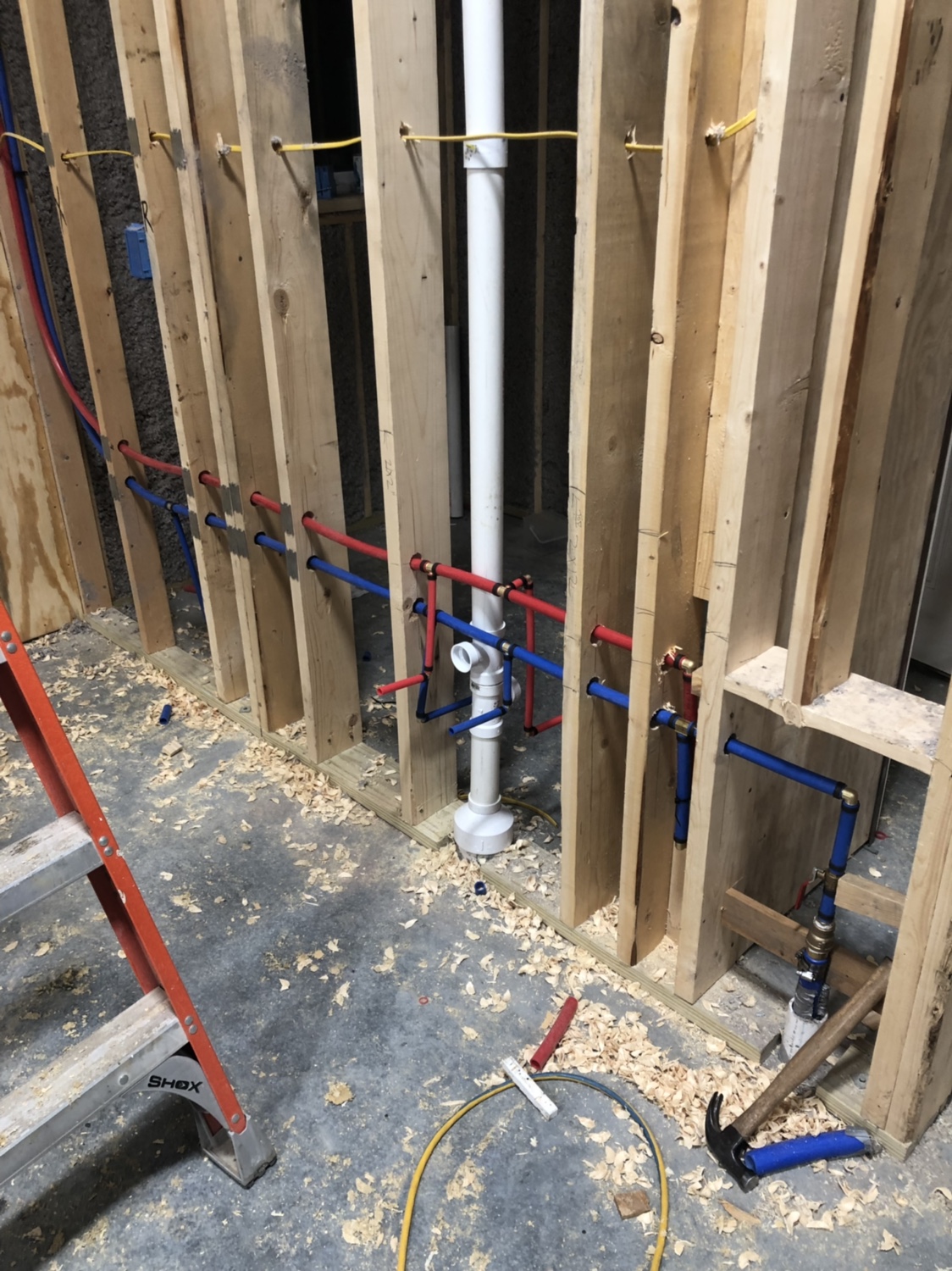 Lines for the hot water heater above the bathroom. I’m still not for sure how he’s going to set up the floor heat with it up there. I guess that’s what I’m paying him for though!