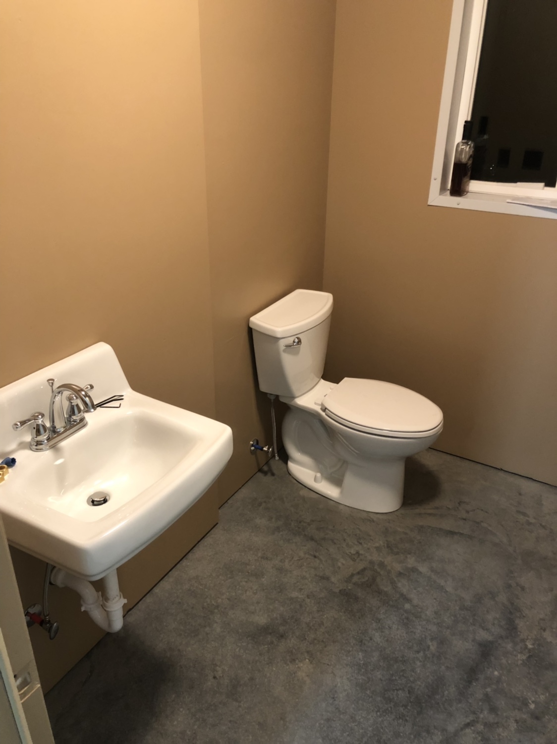 Service sink on the outside of the bathroom and hydrant for washing stuff.