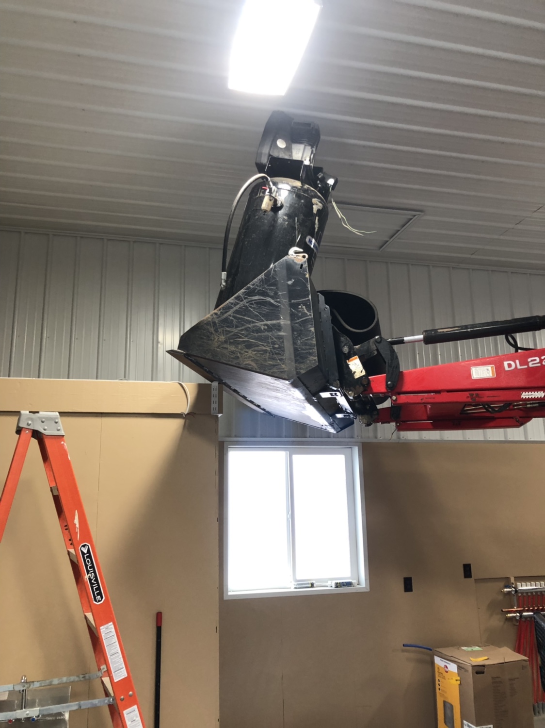 That’s how close the other building that we are going to tear down is. I was watching the rear blade, and should have been watching the loader when I was pulling in. Lesson learned. Could have been worse, but certainly could have been avoided as well. I’m just sick about it.