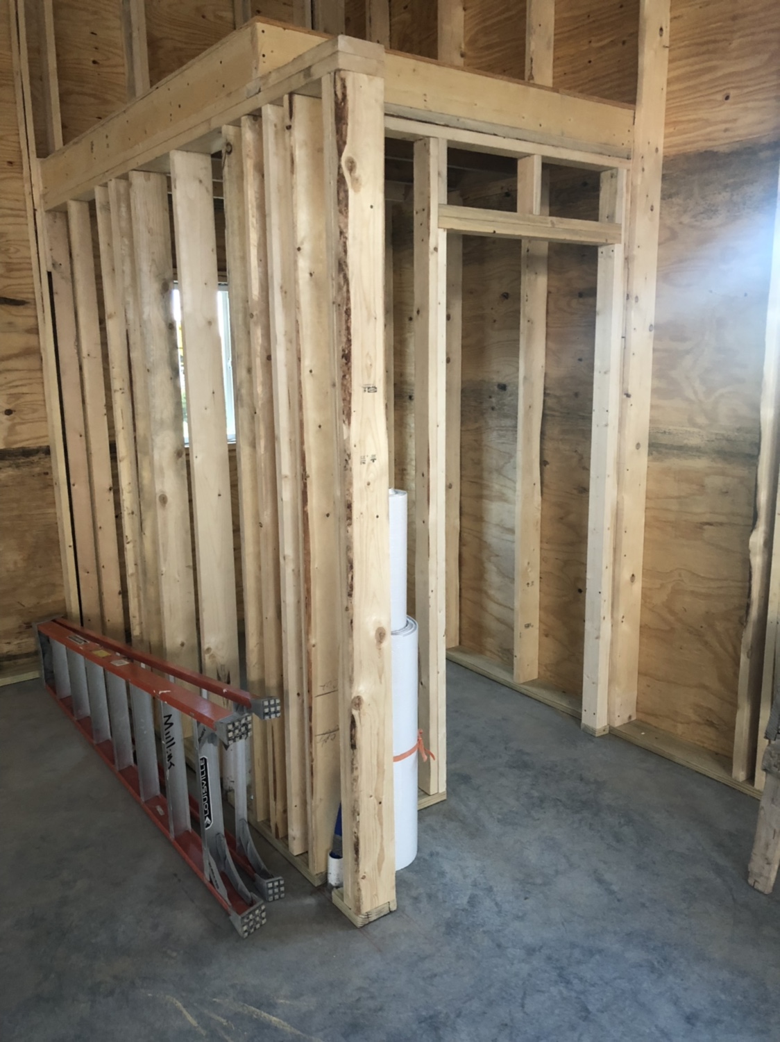 Not much to report from yesterday. Looks like they got the grade work done for the apron out front. Rest of the windows are in. And they started framing the bathroom.
