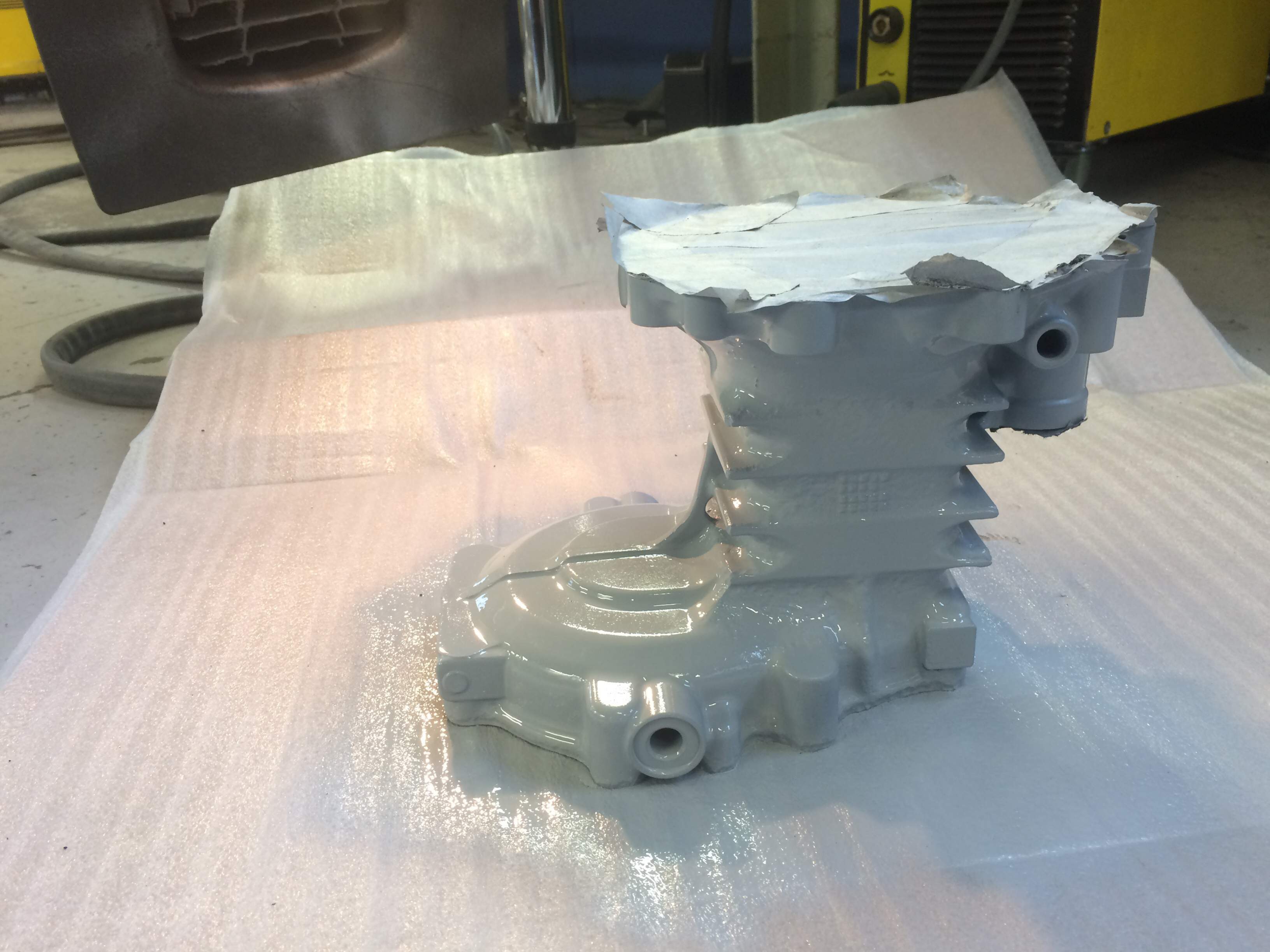 Right now I've welded and milled the broken aluminum gear case. It was a pretty weldable material however I managed to get a pore in the sealant surface. Nothing the sealant won't take care of but still disturbing. Today I've sand blasted and painted the parts and with a full set of new bearings at hand I'm looking forward to assembly and tryouts this weekend. I'll probably continue with some restoration since I've got it apart but I'm really excited to get it operatioal.