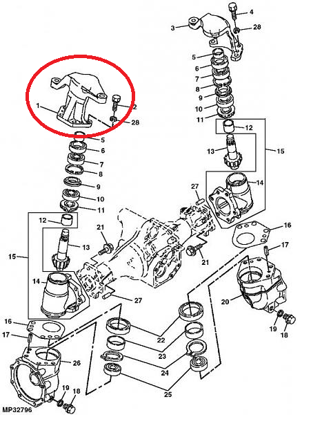 From the HAKO catalog (remember this was initially a Hakotrac (Yanmar) and not a JD (Yanmar) there is two different main versions to chose from. If i chose the first one, catalog is just like on John Deere. But if I chose the second one, I find exactly what my parts looks like. My power-steering cylinder is in front of the axle, not on the back at seems to be the case on JD.