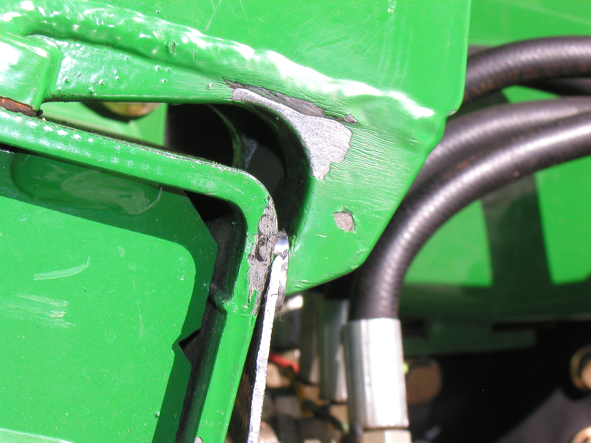 jdgreg- I think I will try your solution and weld some strips of flat stock to the contact points in front. Beats sending it in to JD for the shim kits. I'll wait for a nice warm day to try it.