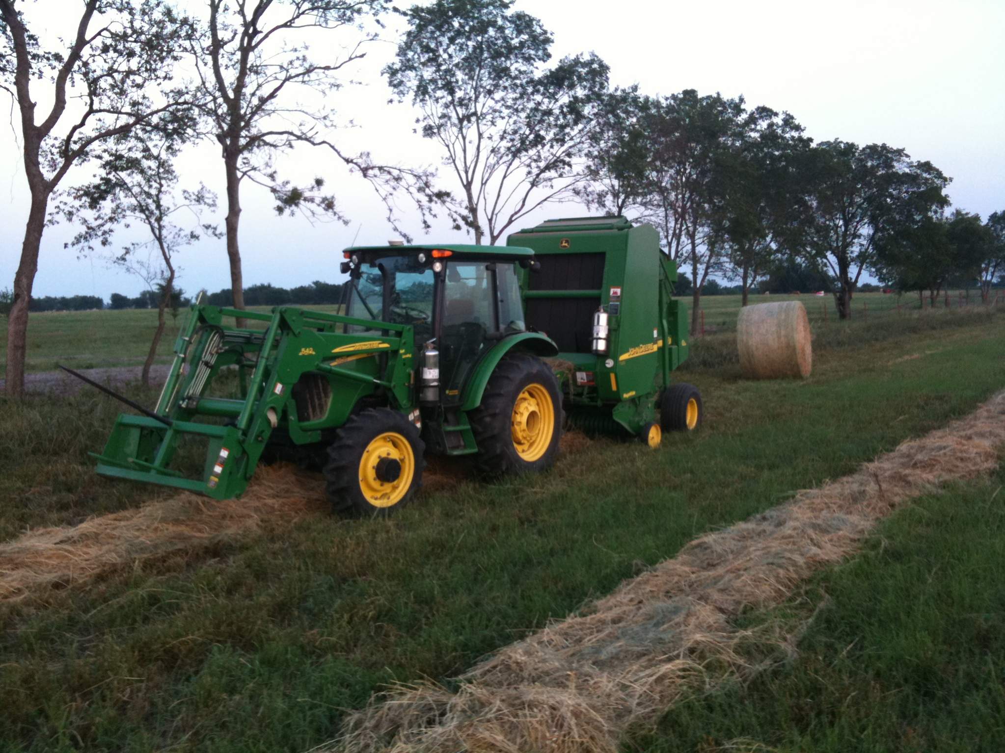 I just finished puttin' on a ton of 22-11-11 and 6% sulfur on the 10 acre field I'm gonna bale with my JD 110 and the JD 336 baler this July.