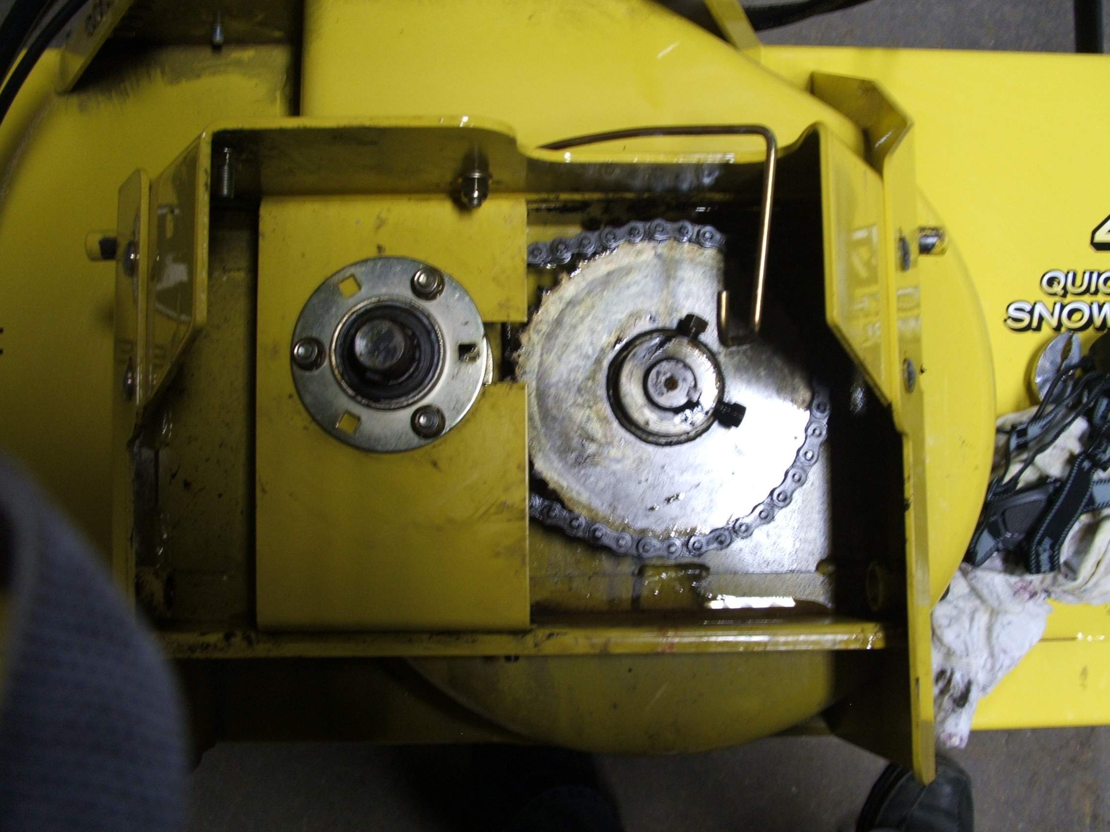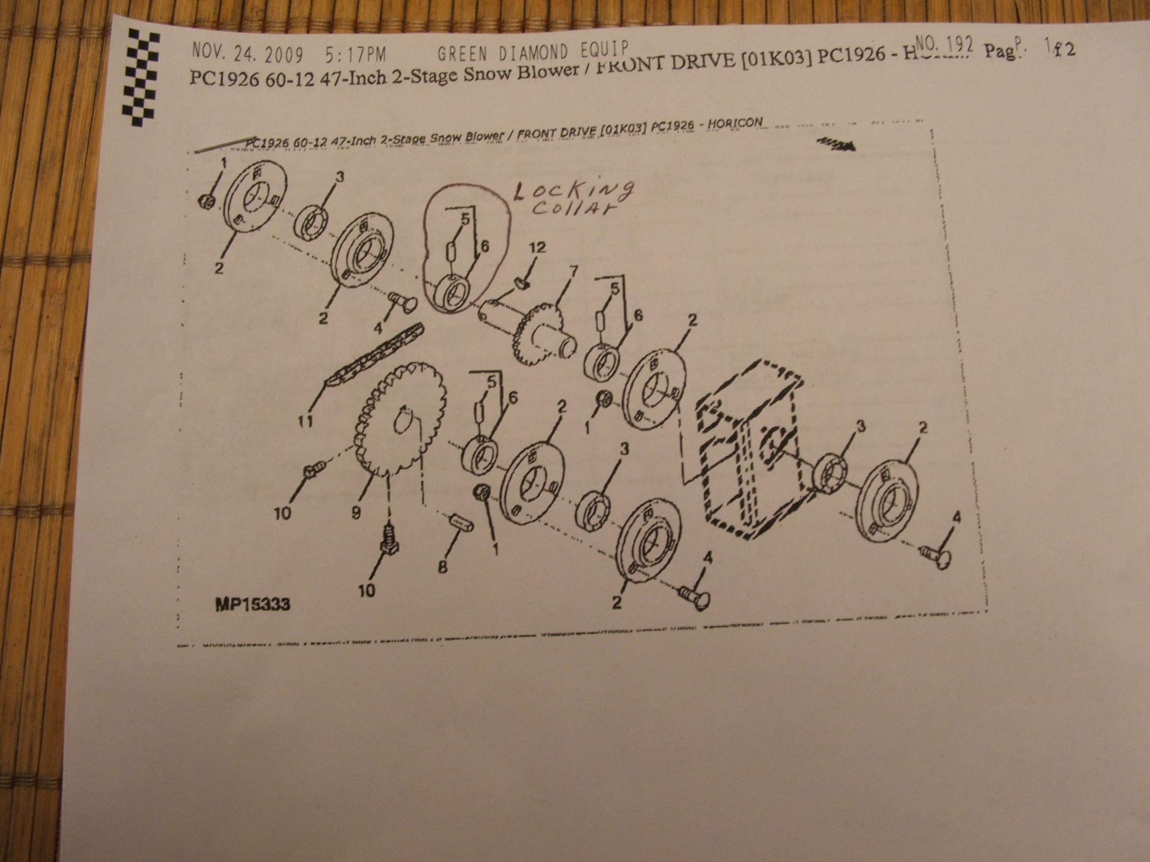 Have any one seen this problem before? I read on another post to check the sprocket for loose set screw which make the sprocket slide on the shaft and cause a misalignment. Well to my surprise I notice that the locking collar inside the small sprocket, was loose and split.:mad: It is fairly hard to see or get to it but I manage to get a few pictures. I also notice that one of the two locking collar at each end of the auger was also loose. I bought this blower new last year. What could have cause the collar to split like that?:confused: Any idea?