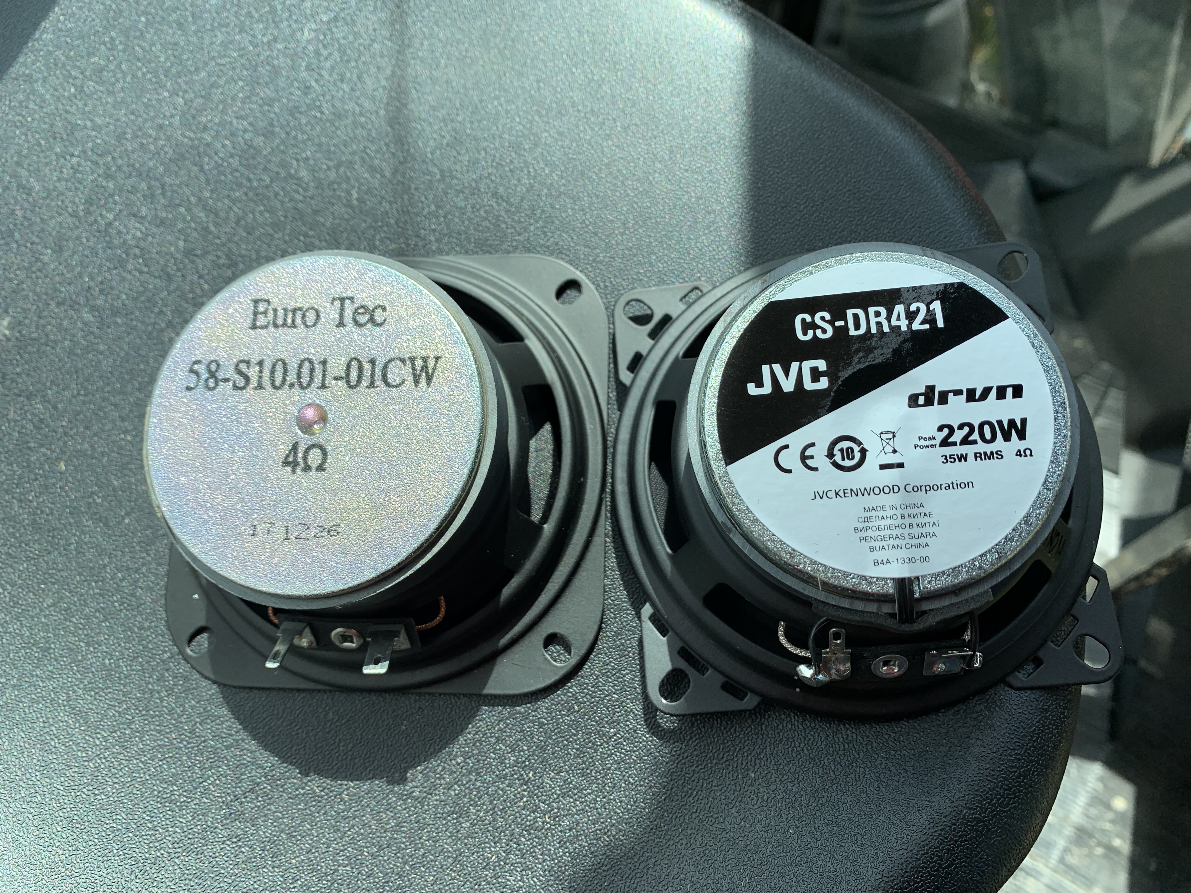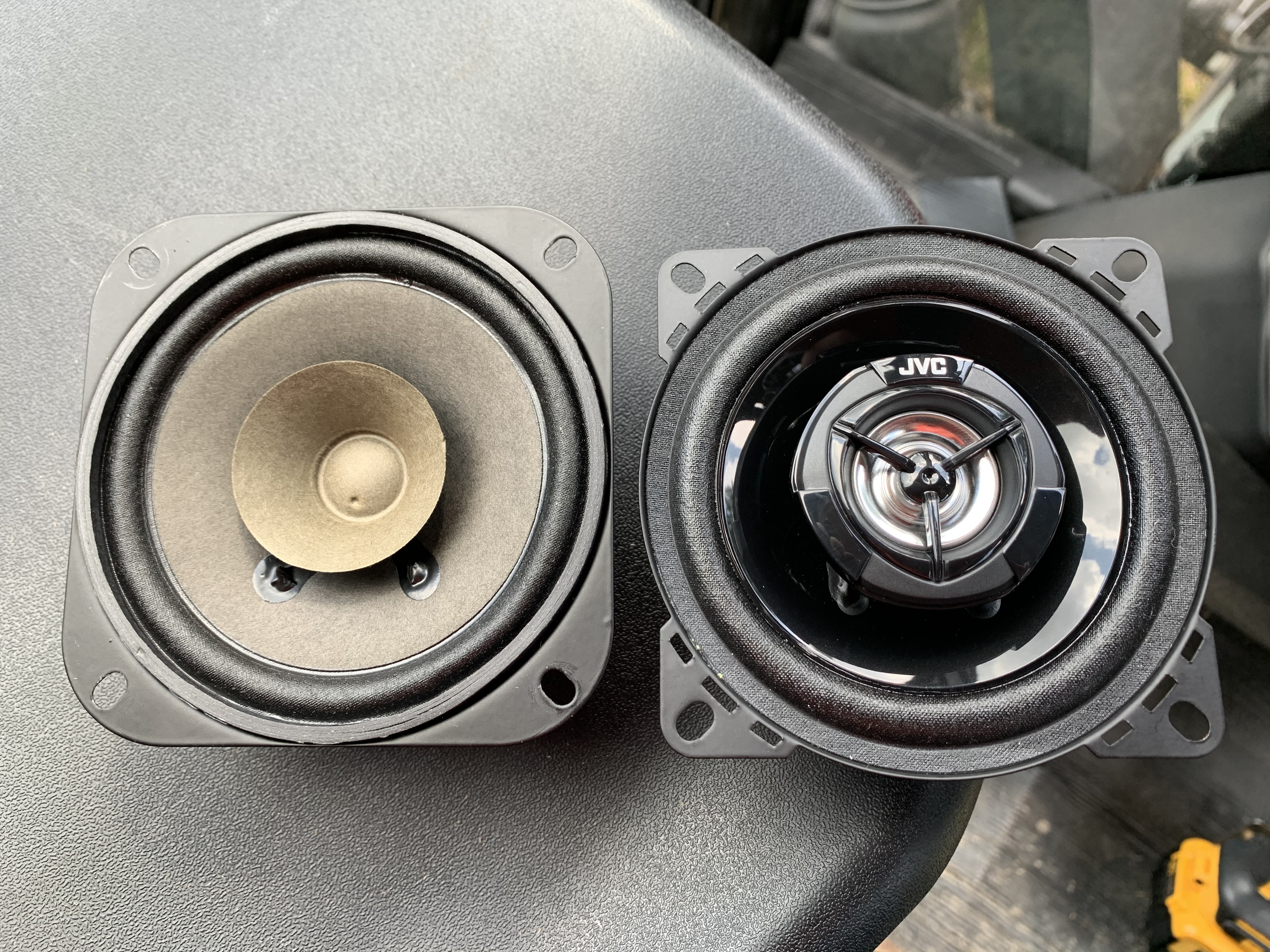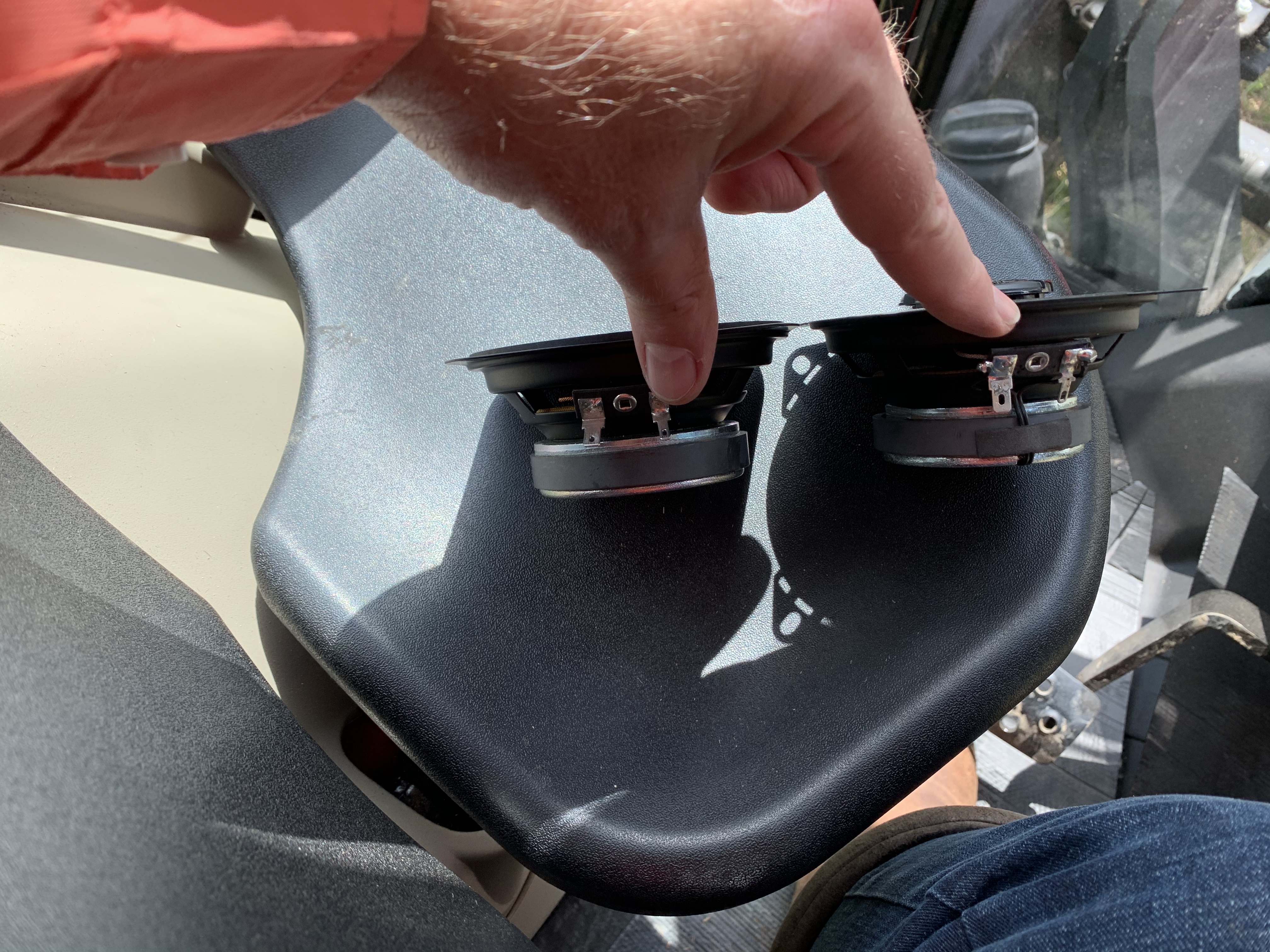 Hey guys, I did a upgrade I wanted to share. When mowing I had to turn up the music too loud to hear the words. It was just muddy sounding. I took out a speaker and looked it up on the net they cost $4 ea so no wonder. I spent a bunch of time measuring and researching.