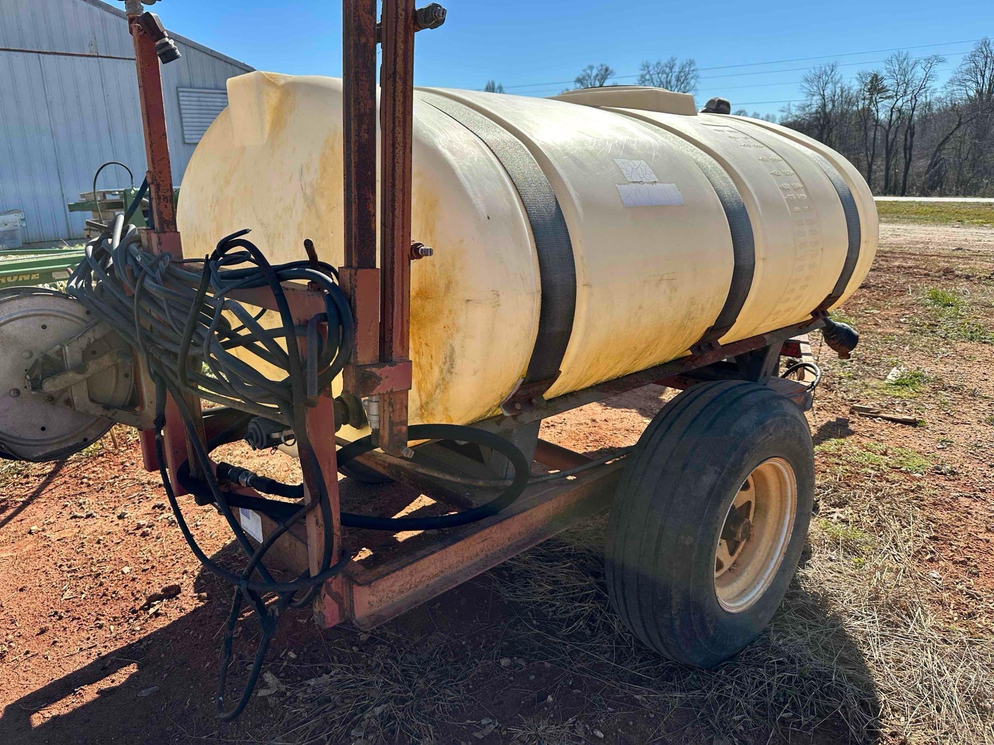 Located offsite in Cleveland, GA - 500 Gallon Pull Behind Sprayer - comes with new pump