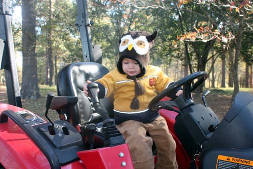 . He by-passes the tire swing, sand pile, fort and various powered/non-powered toy rolling stock and heads straight for the tractor.