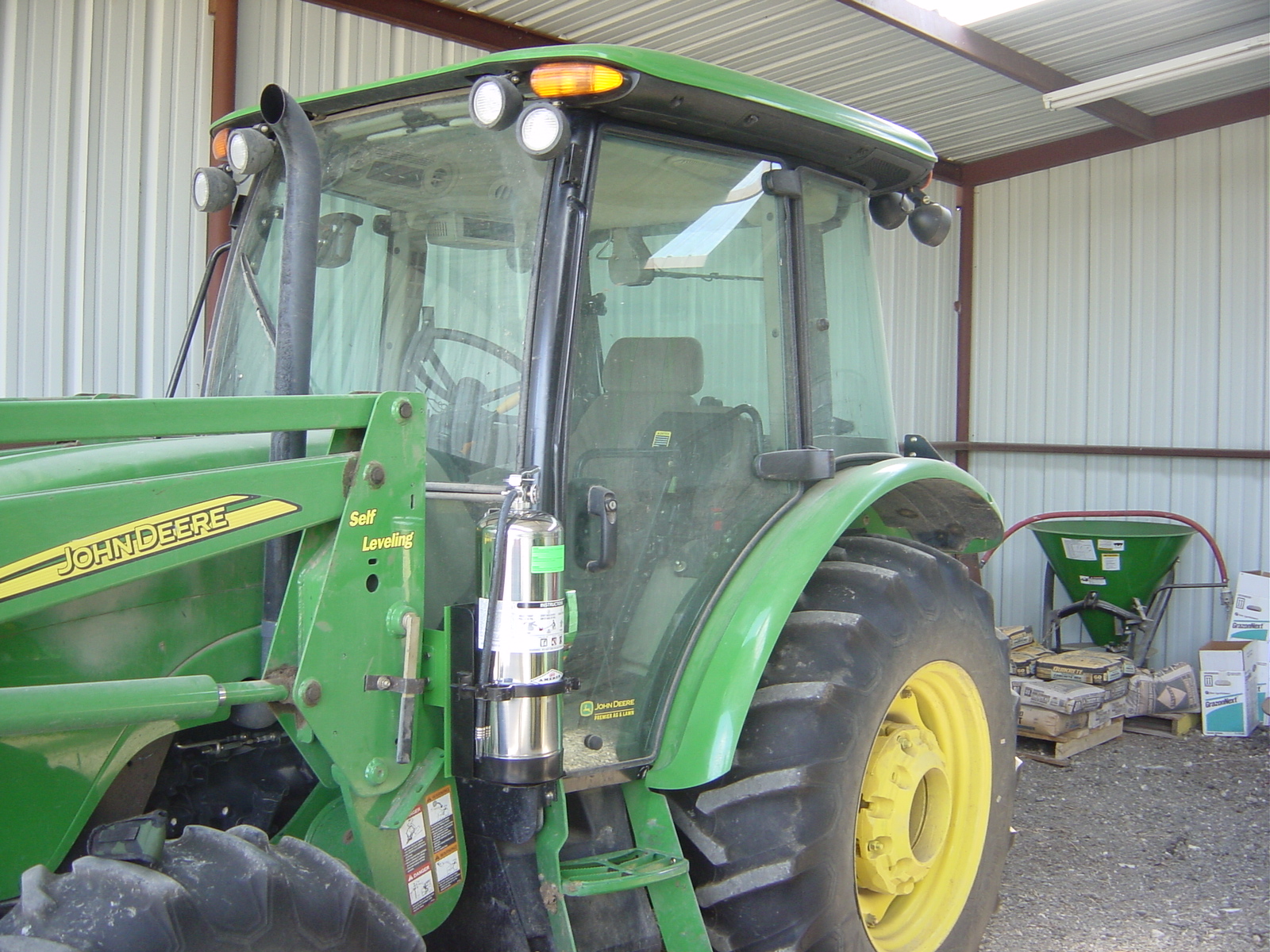After one too many grass fires while cutting hay I decided I needed a good size fire extinguisher on my tractor that is easy to get to, etc. Here is what we came up with.