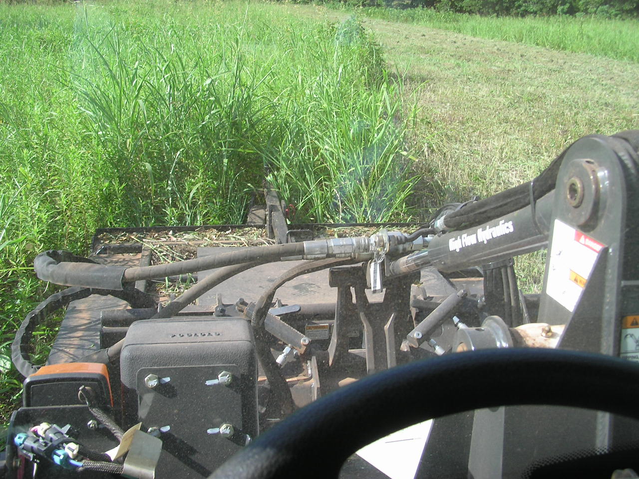 On the hydraulics issue. My cat has been doing this since I first got it, just slowly getting worse. Wasn't sure what it was. Previous owner had never used any accessories requiring aux hydraulics, which really exacerbated the problems. Finally just got fed up with it and took it in. I was fortunate enough I got to see the inside of the drive motors at the the shop. Basically what happens, the wear in the drive motor allowed hyd fluid to essentially bypass like a relief valve had opened. This happened as the hyd oil would heat up and the viscosity of the oil would drop allowing it to pass through the areas with the most wear. The more it warms up, the lower the viscosity and the worse it would get. So I could bushhog maybe 30-45 min at most. As the fluid would bypass the motors, my pilot pressure would drop, which is required to run everything else. It never did or would overheat before, and after 3 hrs in 90 + temp yesterday it still didn't.
