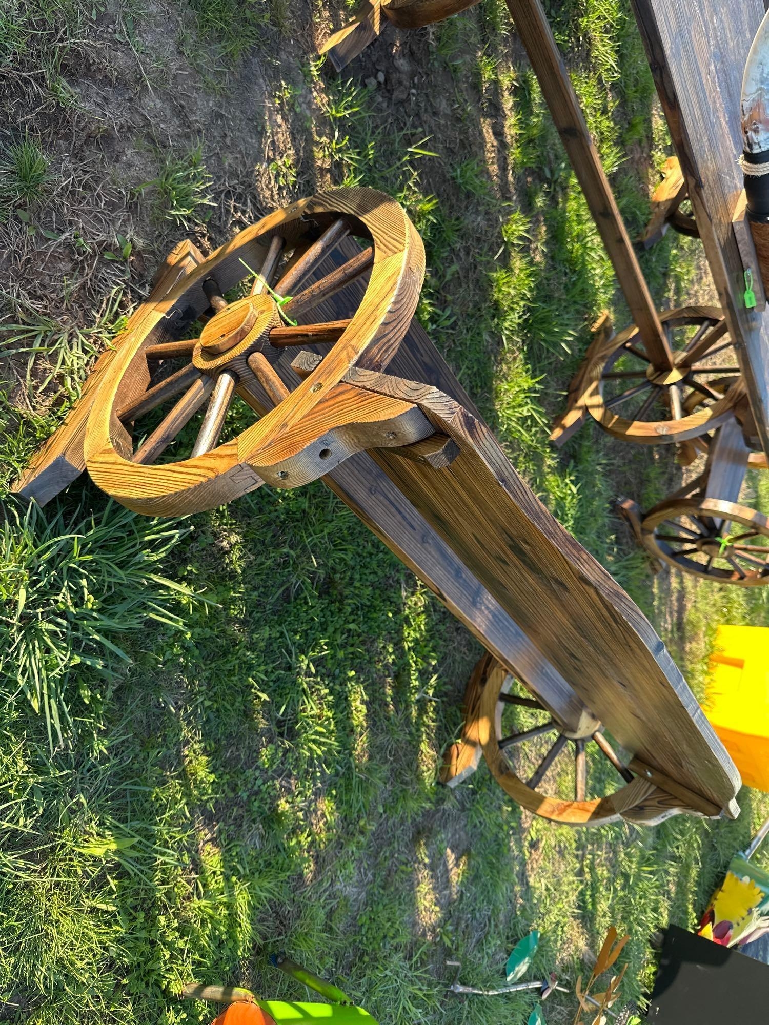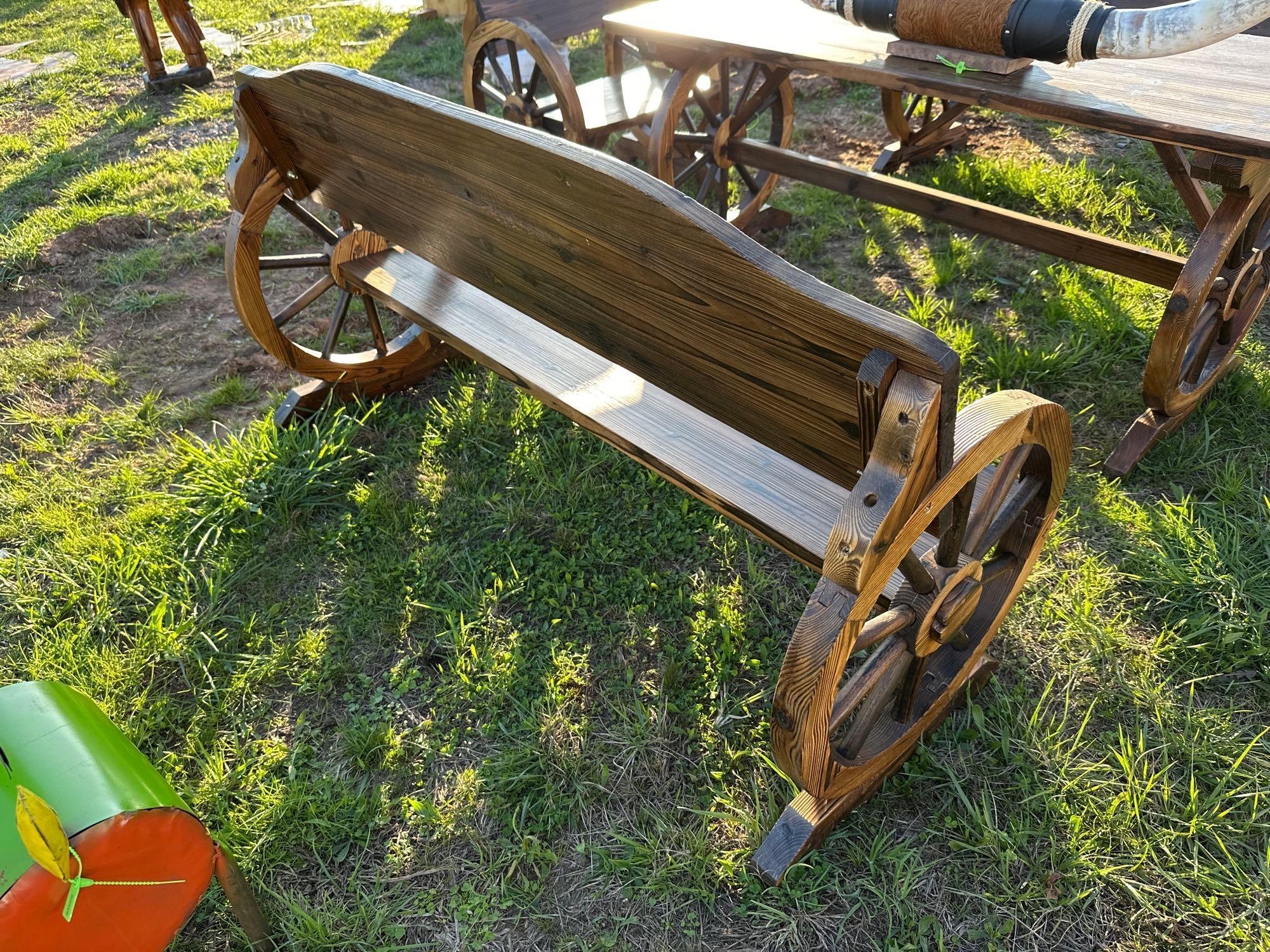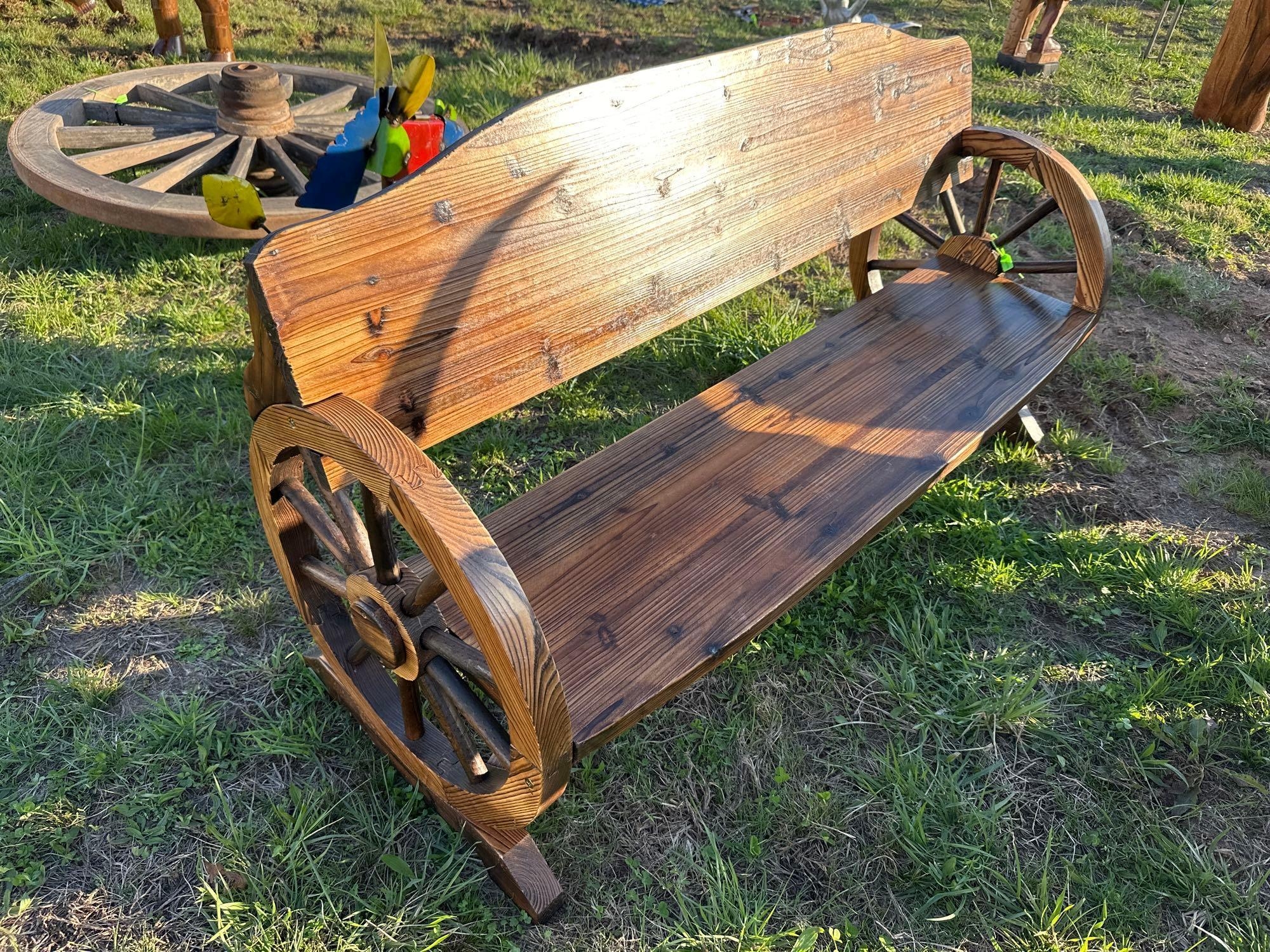 Located at SEAC lot in Young Harris, GA - 58in Wagon Wheel Bench