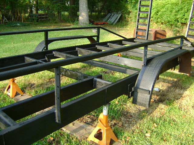 Thanks for sharing your pics!!! My trailer frame looks very much like yours maybe with a little less of the frame work. But I like the way you have yours set up with the attached ramps in the back, Great idea! and the pipe top rail looks really sharp. Thanks for sharing!