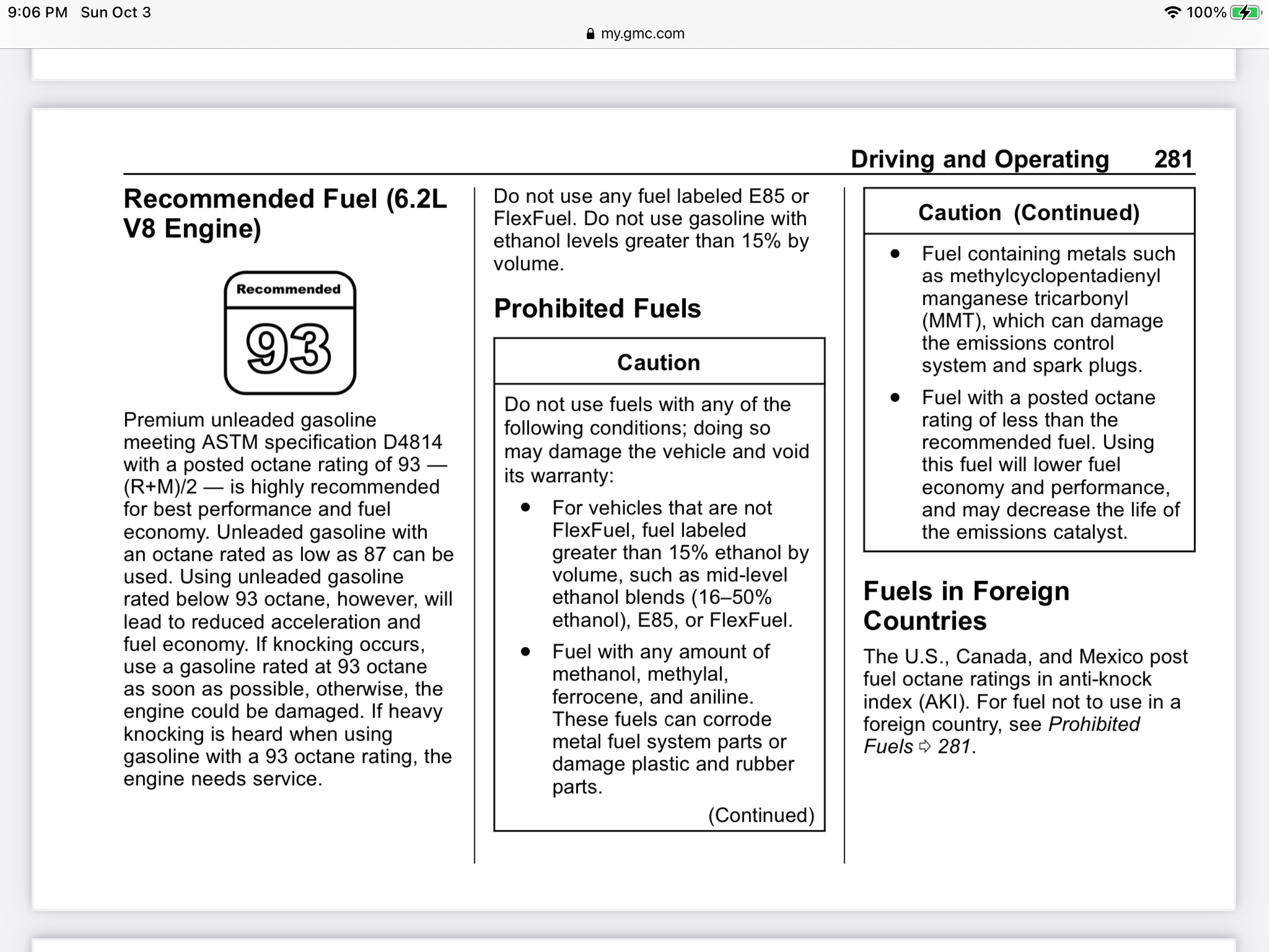 Actually the owners manual states 93 oct.fuel preferred NOT required in the 2020 Yukon with the 6.2 motor.$5.96 for imperial gal.I assume? It's $3.85 per gal where I live.