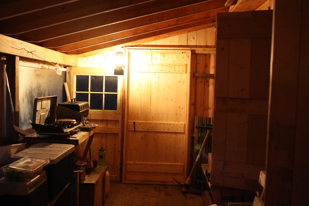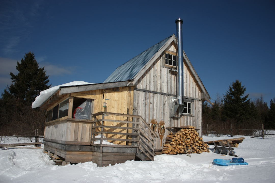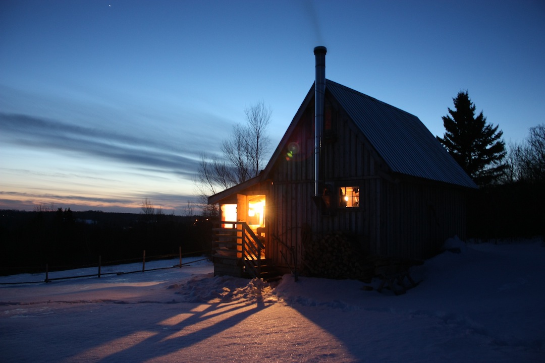 When you got to the cabin, did the roof have snow? Is it so clean in the picture because of the heat from inside the cabin or does it just naturally shed snow because of the pitch?