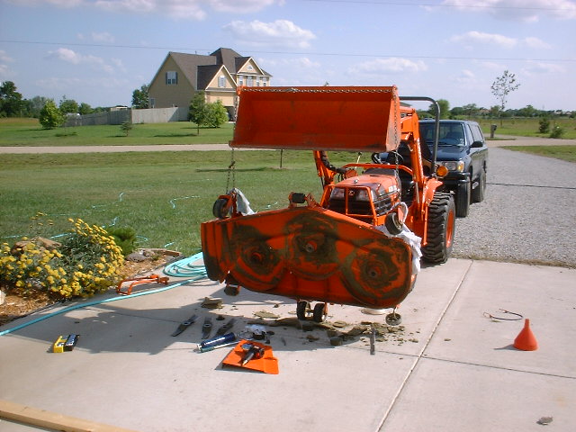 Thought this thread as good a place as any to post pics of MMM maintenence. Also, prompted by this thread I thought it time to look at the bearings to see what condition they were in. Unfortunately my wife was gone so once my hands got really dirty the pic taking ceased--oh well.