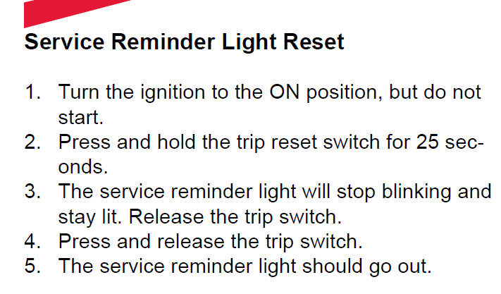 (Left hand holding down trip reset button, right hand turns ignition switch: off, on (1), off, on (2), off, on (3), off, on (4), off, on (5).