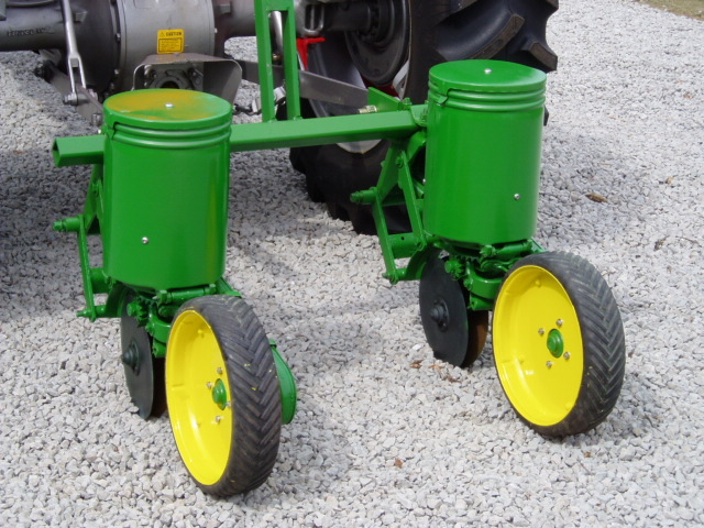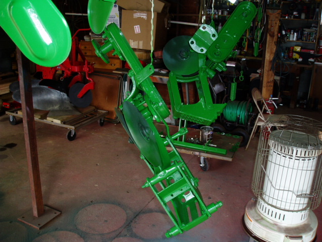 And so here we are. I found a couple #70 row units at a nice price. Picked 'em up last week. They were "original". I got a few spare parts in the deal. So this weekend, I took it apart, cleaned it up, primed and painted everything. New decals will be here mid-week. I'm going to order a set of DEPTH BANDS as soon as I get a chance to swing by the Deere dealer. Also looking at buying a GANDY fertilizer unit, ground drive, and Yetter disc-type fertilizer openers. (Have to find a GANDY distributor in this area first.)