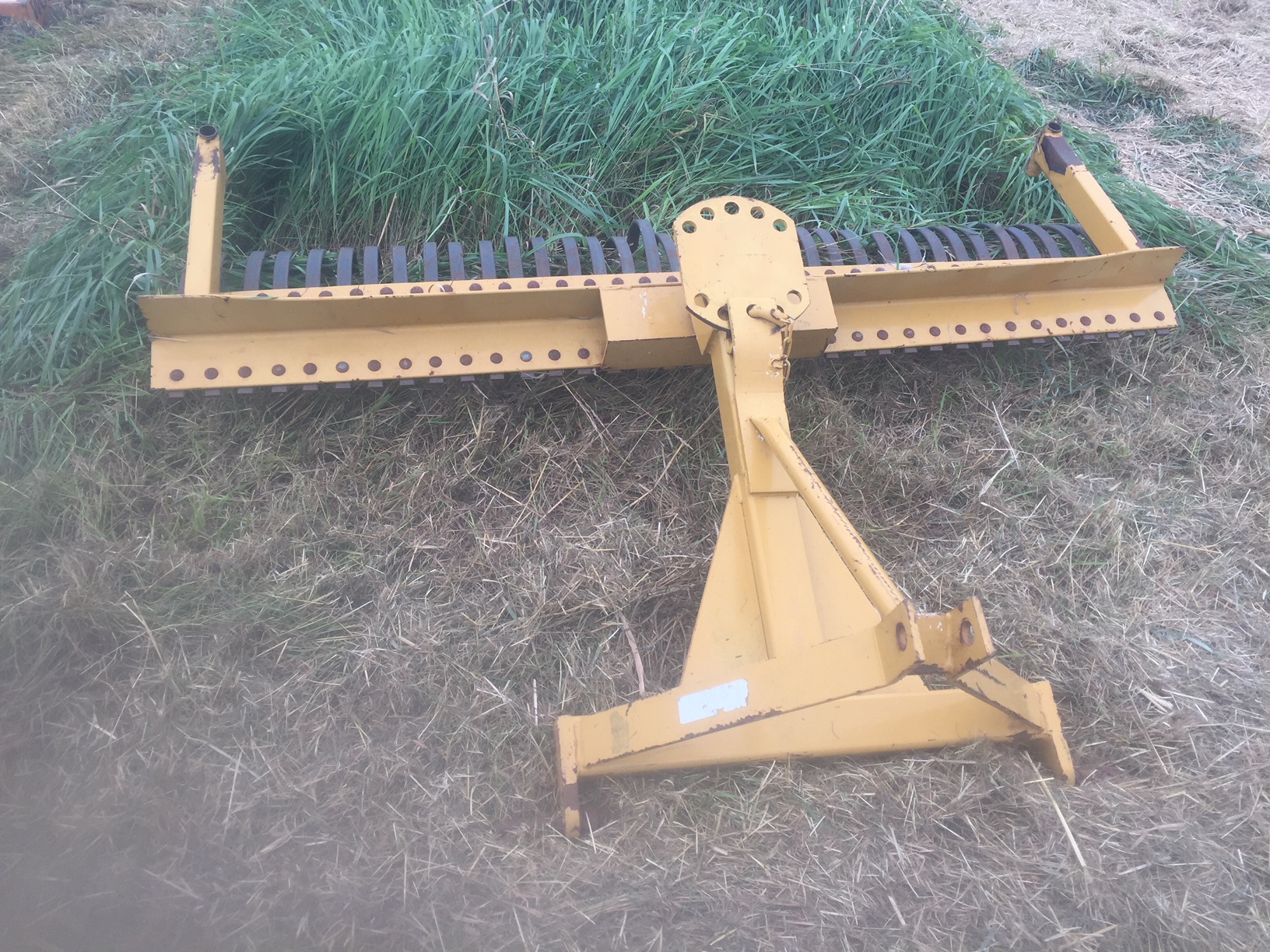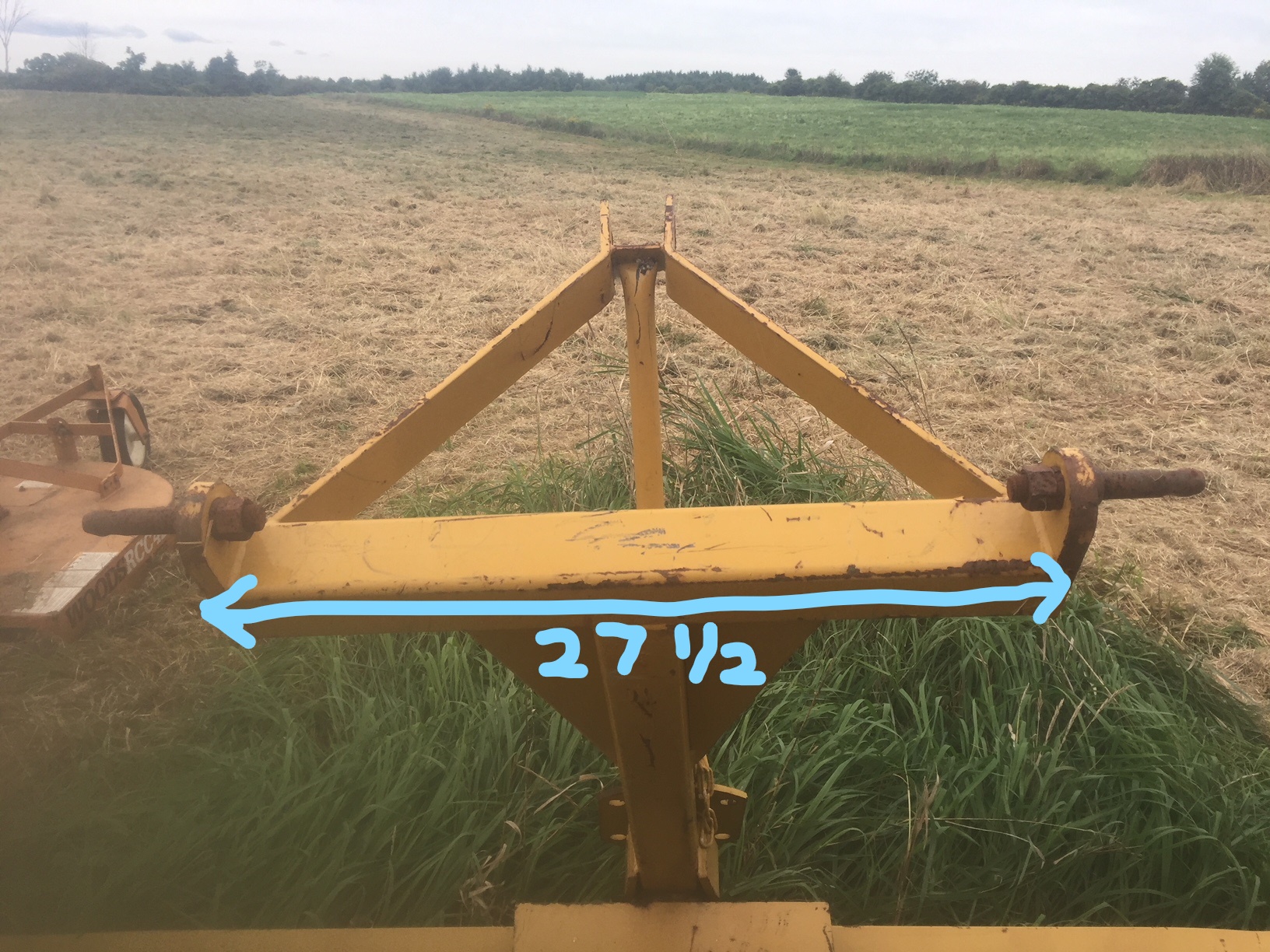 I acquired this with my BX22. Not sure of the make. It seems to be a Cat 1 attachment as per the pin size. My issue is that from outside of frame to outside of frame measures 27 1/2, my quick hitch is 27 1/4 inside to inside. Other Rakes I have measured seem to be approx. 26" which would fit fine.