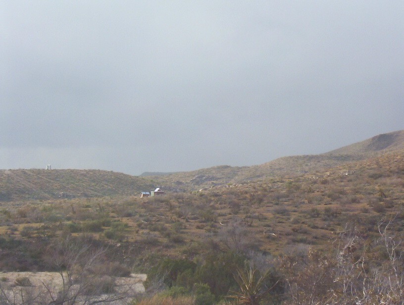 A very beautiful picture, but it doesn't look like there is anything more than 5 feet off the ground other than your cabin. I hope your tress make it. If they do you will truly have an oasis in the desert.