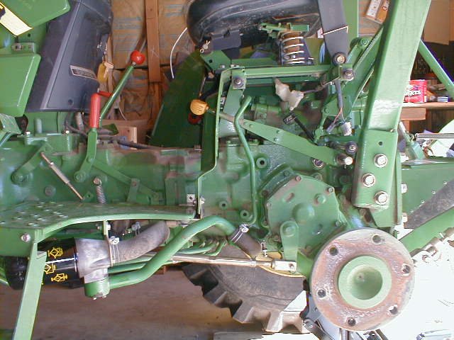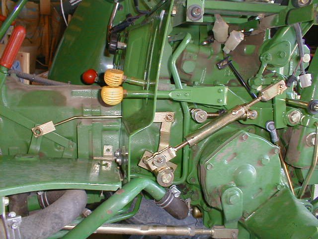 Linkage installed. Note new PTO lever. With all the springs, levers, bellcranks, pushrods, Rube Goldberg would have been proud!