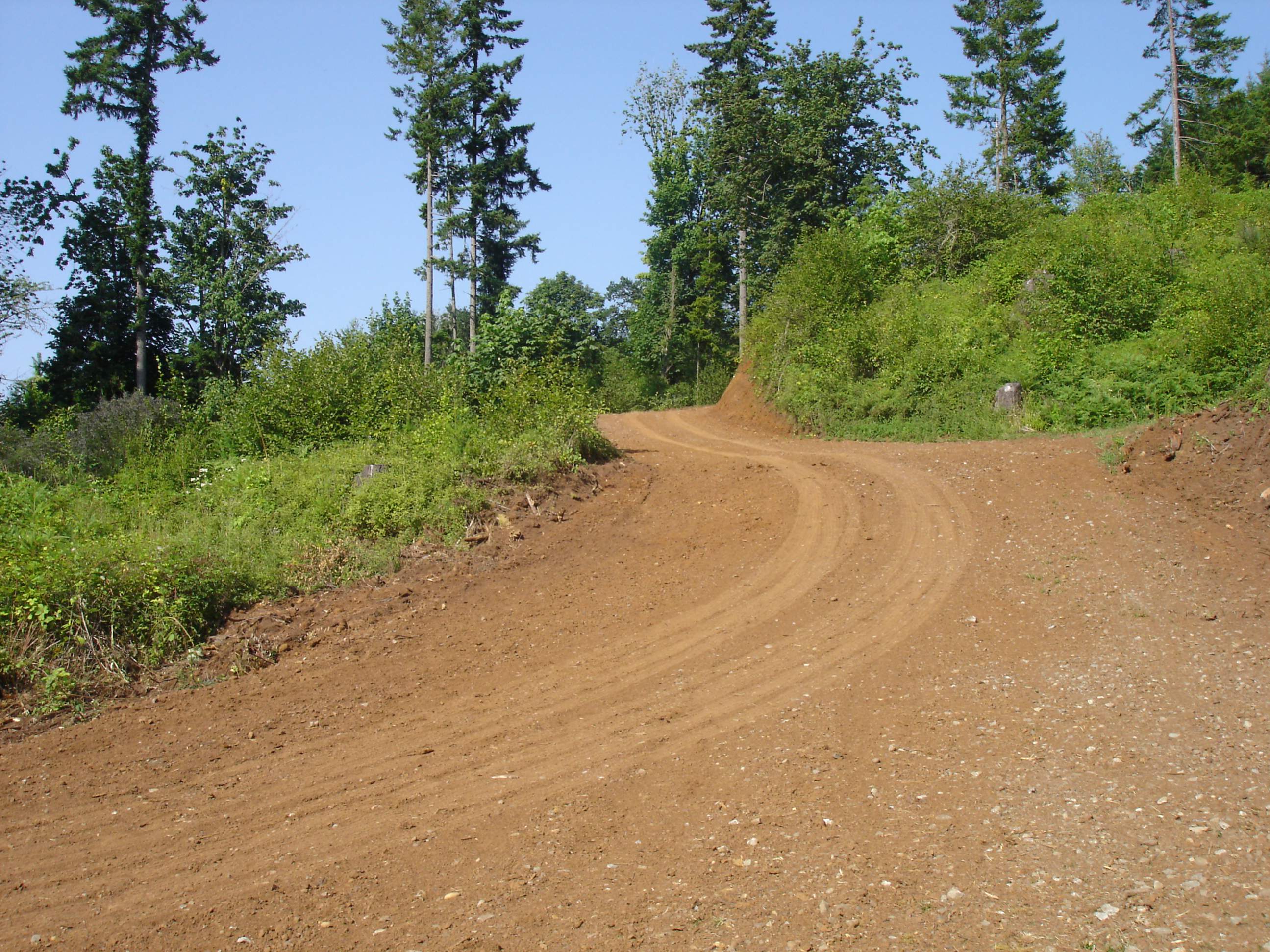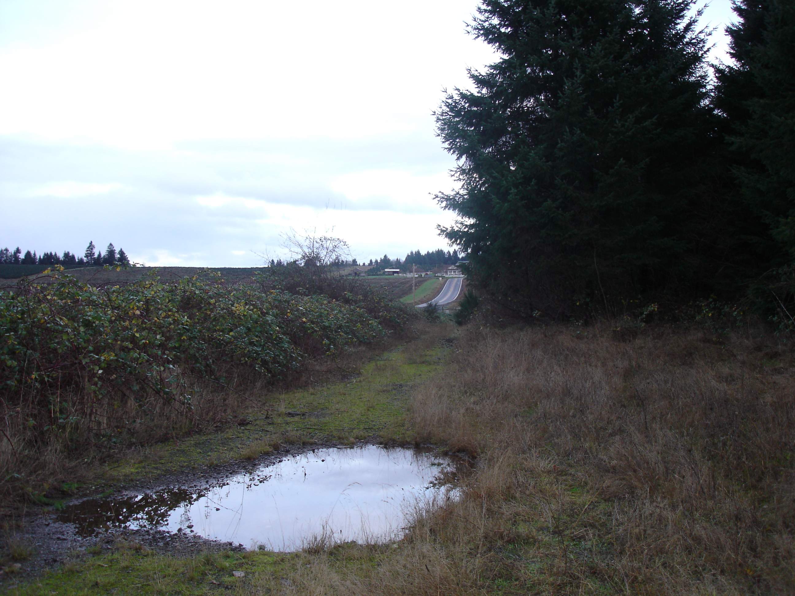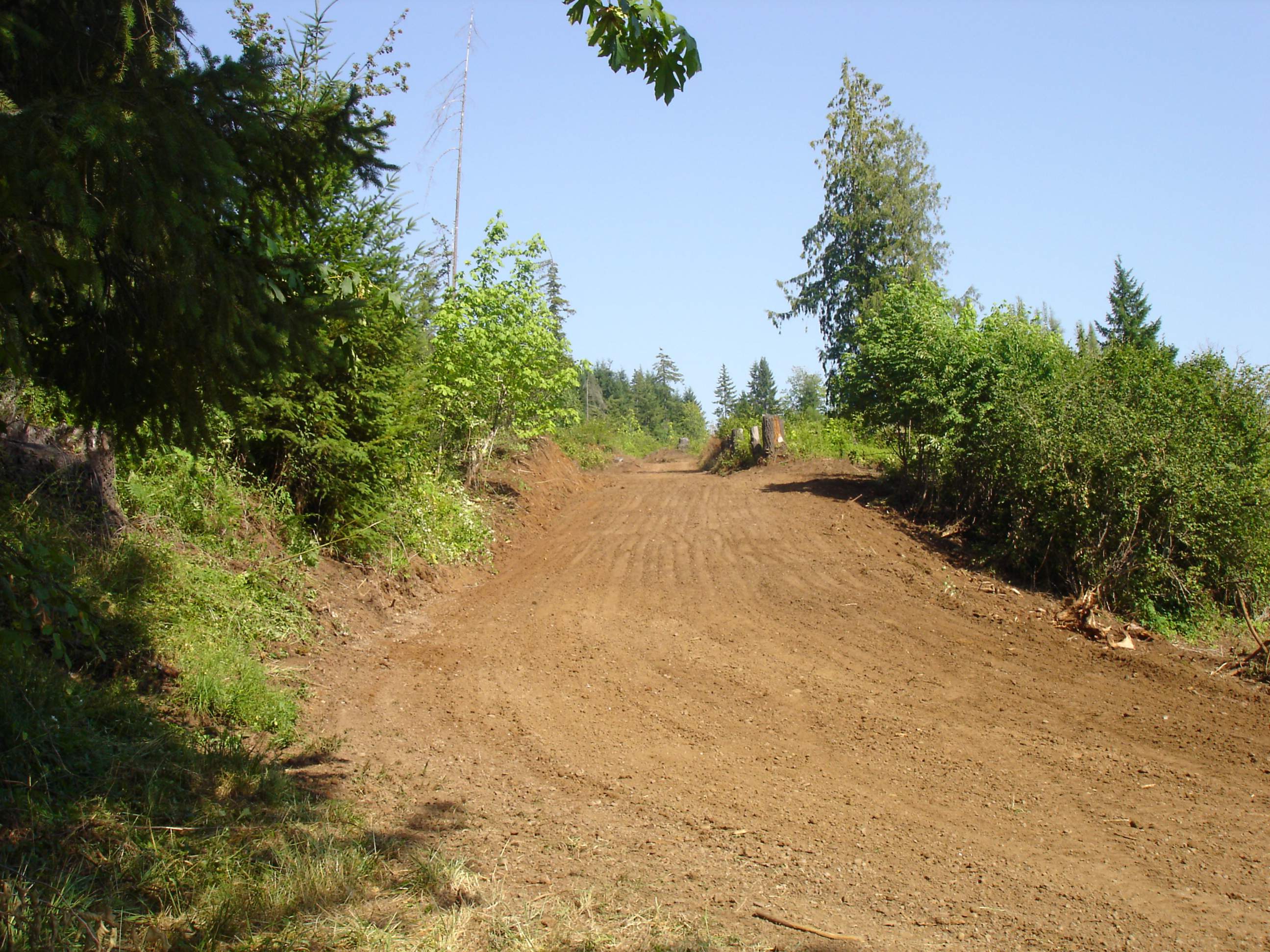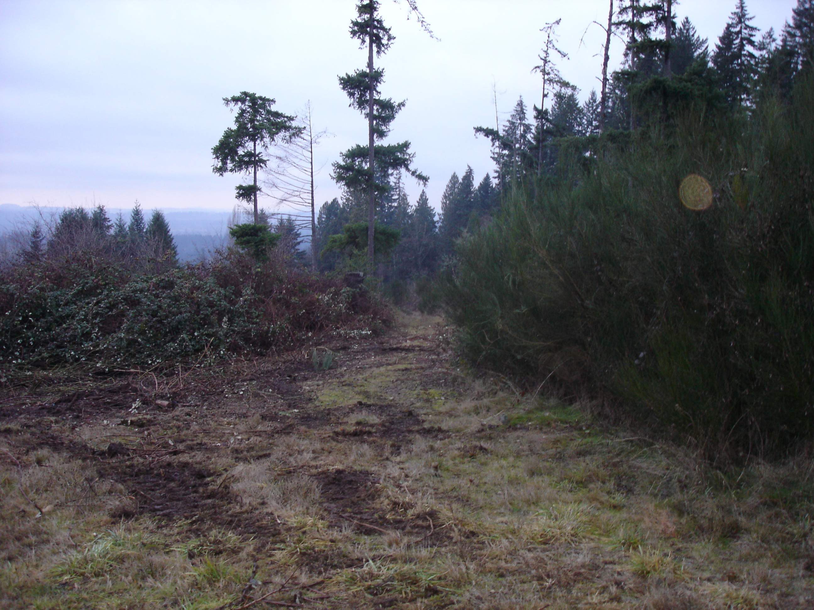 I ended up having to dig out the uphill side with the excavator, then hop on the dozer and push it to the downhill side. I need to widen it out and straighten it up some, the downhill side is 65-70% slope so you definitely don't want to get to close, 80ft to the bottom. There is about 400 ft of this before it gets more level. The ground has gotten too saturated at this point so I'll have to wait until it dries out some to finish but I was able to clear the scotch broom and blackberries and located the spring.