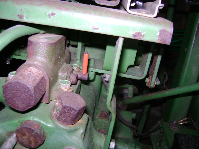The red lever is the speed of drop control for lighter or heavier implements. Forward slows the rockshaft drop, rearward increases the speed of drop from the owners manual.