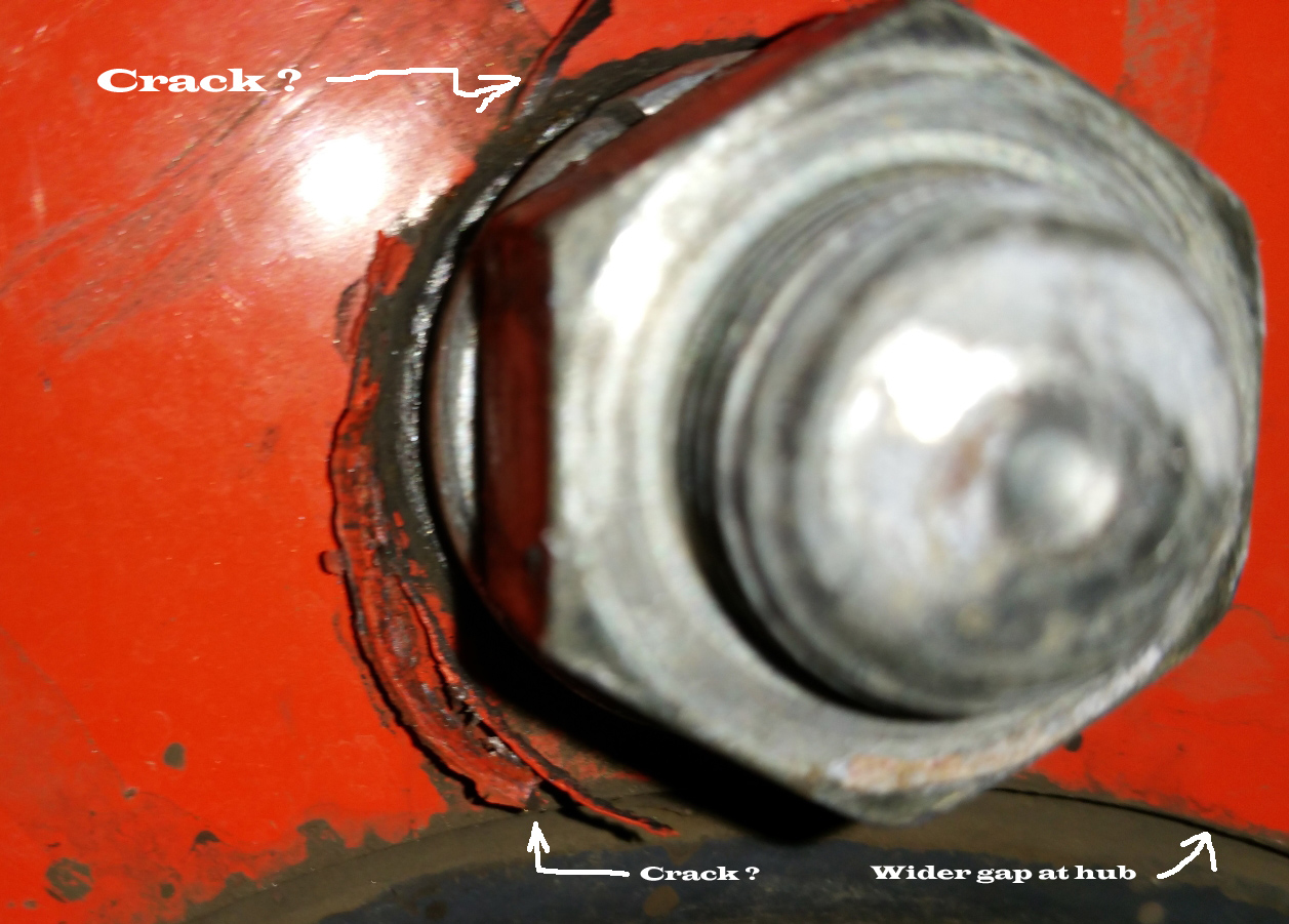 No they don't. That's how rumors get started. I have a JD310 and it uses hardened bolts clamping hardened flat washers to hold the wheel to the hub. That's industry standard. You should check your sources.