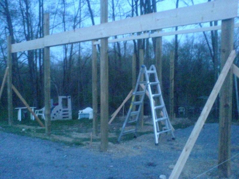 Here is my pole barn. The posts are inches from perfection mostly because of size differences but I planned for that in the design. It has log walls now (firewood stacked between the posts :))
