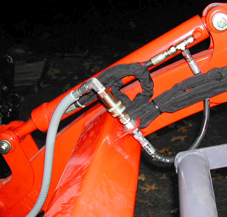 hoses that go from the loader arms to the bucket are encased in 1/2"