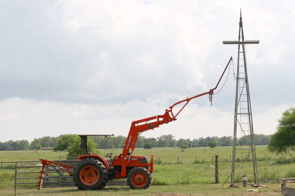A 2x2 receiver at the tip of the boom is used for my "stinger" which is 2x2 steel tubing to give me more lift height or reach. A hydraulic top link lets you change the boom angle, giving more lift, and a receiver at the 3pt connections allows me to pull a trailer with the boom attachment. During a beach cleanup I could pull next to a log and back up to jack knife the trailer, with the boom tip over the load. After lifting the log I would just drive forward and the log would be over the trailer.