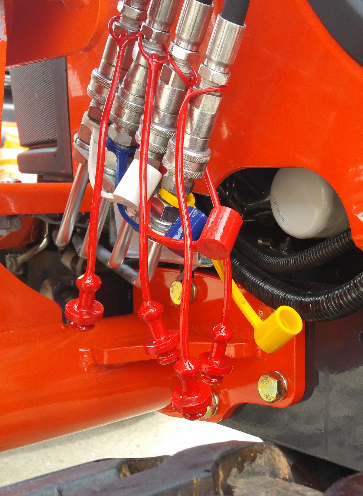 Now it was time to attach the 4 hoses to the tractor's existing hard lines, which run from the loader valve. As simple as attaching air lines. First, we depressurized the system(Ted video).