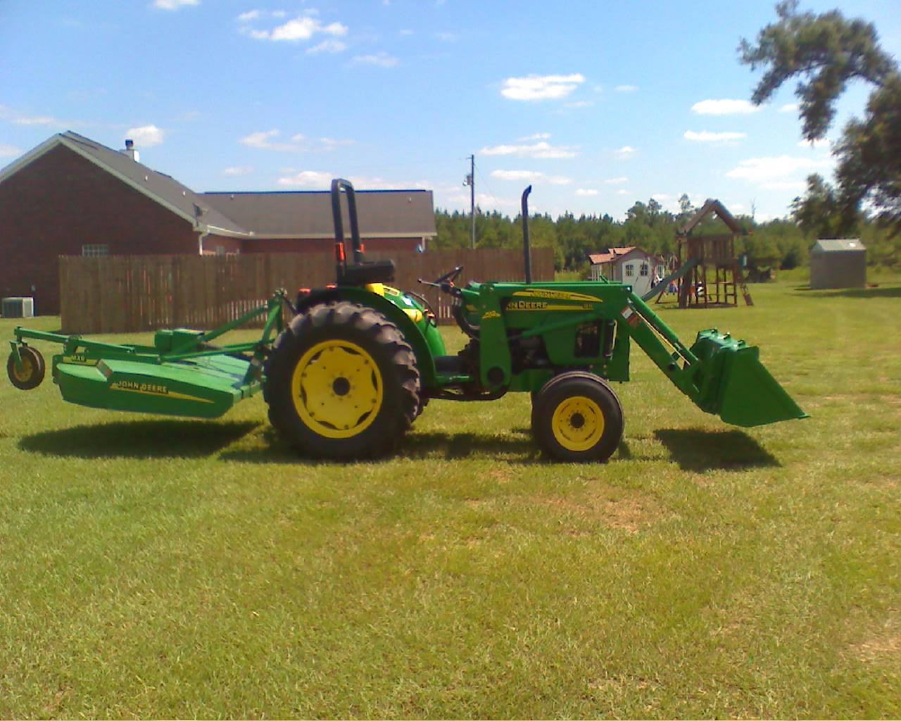 Well after much thought and shopping around, I took the plunge and placed an order for a John Deere 512 loader today. I did an initial discing of our food plots over the weekend with our heavy 8' 3PT disc. I had no problems handling it and only lost traction with it buried to the axles in very loose soil. This is the heaviest implement I will use and was pleased with the overall performance. I encountered several situations where I needed the loader to move some dead trees. I considered the quick attach model, but decided against it since I don't forsee needing to remove the loader frame. I checked around and most people I know don't take the loader frame off. Loader was in stock, but mounting brackets were gonna either have to brought in from another store or ordered. Gonna attempt to post a pic of the tractor before the loader and another after I get it installed. Thanks for all the advice and recommendations.