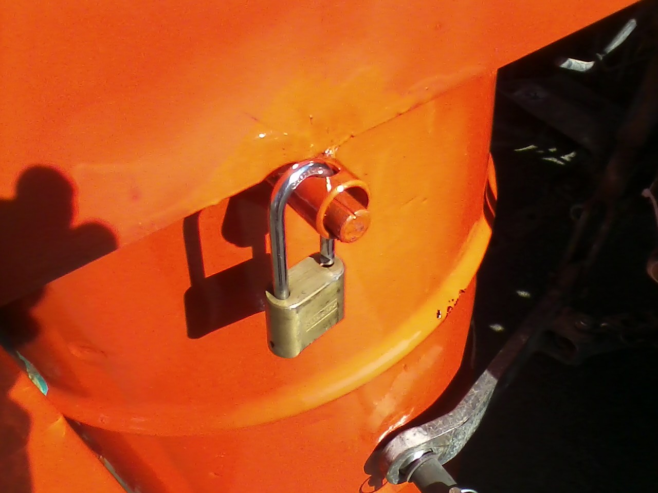 The tool box and lid are connected through a receiver on top, where we normally drop in a 2-5/16 goose neck hitch ball.