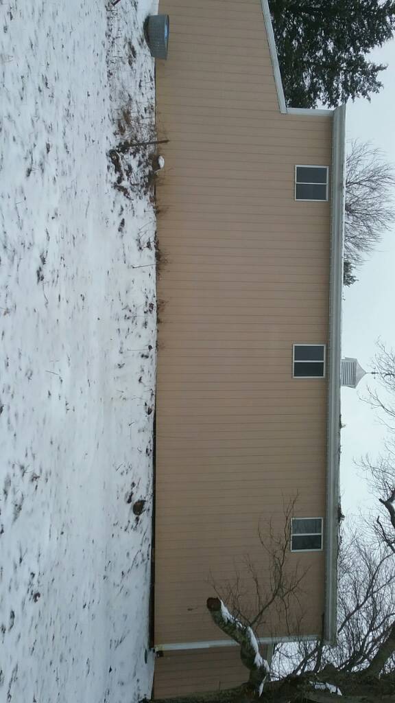 Pictures show front, then back three windows are upstairs. Back has a 4ft x 4ft drop embankment, but yesterday talking to contractor we said put in a concrete wall, concrete top. Then out about 24ft. so 50x24, two stalls one end with doors, large sliding door other end. Then I could even have another step down (ground slopes down, but not steep) then open shed. Gravel...but sand in two stalls.