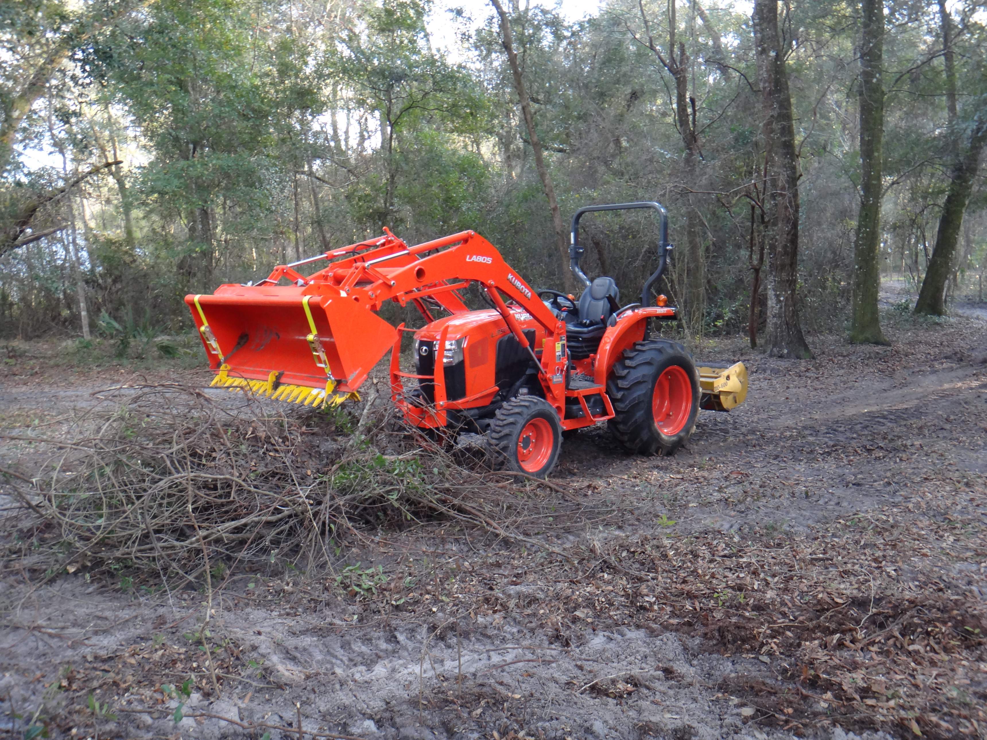 Yes sir Jeff, nice tractor but a little big for what I want to do with it. I help a family member keep up some land and really need one that size to turn the 15' flex wing. If not for that, I would sell it and purchase a 50ish HP HST tractor. Thanks for the videos, as I haven't seen either of those attachments before. I need to get out and thoroughly walk the property, to see just how much I want to take out. I've been clearing some of the more open areas with just the bucket and rotary cutter, but it has been wet so the bucket leaves a lot of soil in the roots and the rotary cutter leaves a split portion which will probably end up puncturing tires. The ratchet rake will probably make the list especially for piling up the brush; it looks like it does a good job on tearing out brush also, I will research it a little more for the 2-3" stuff that I have.