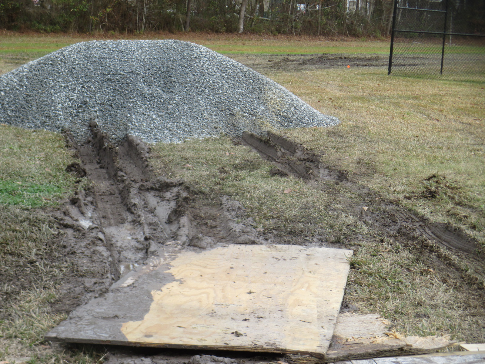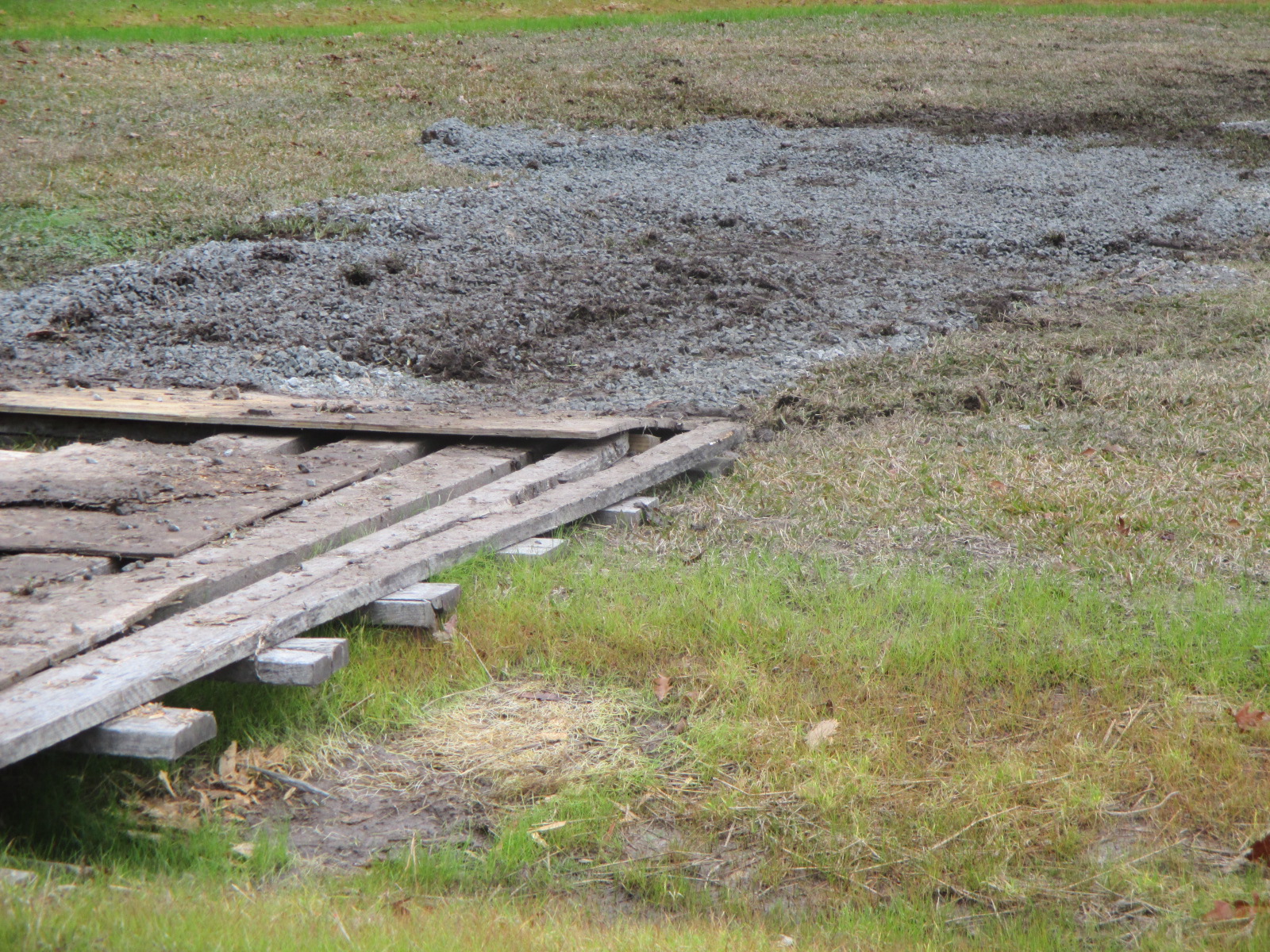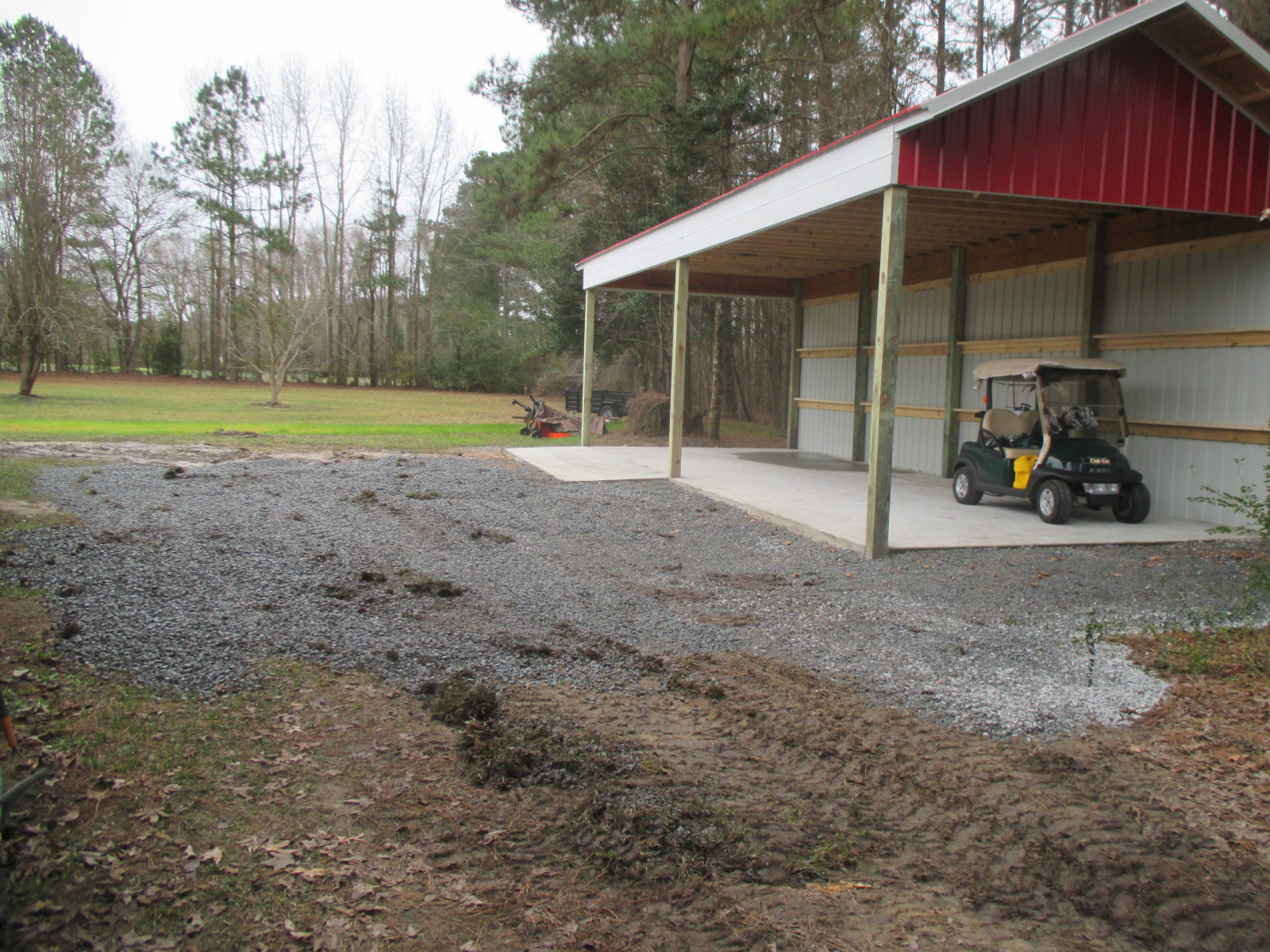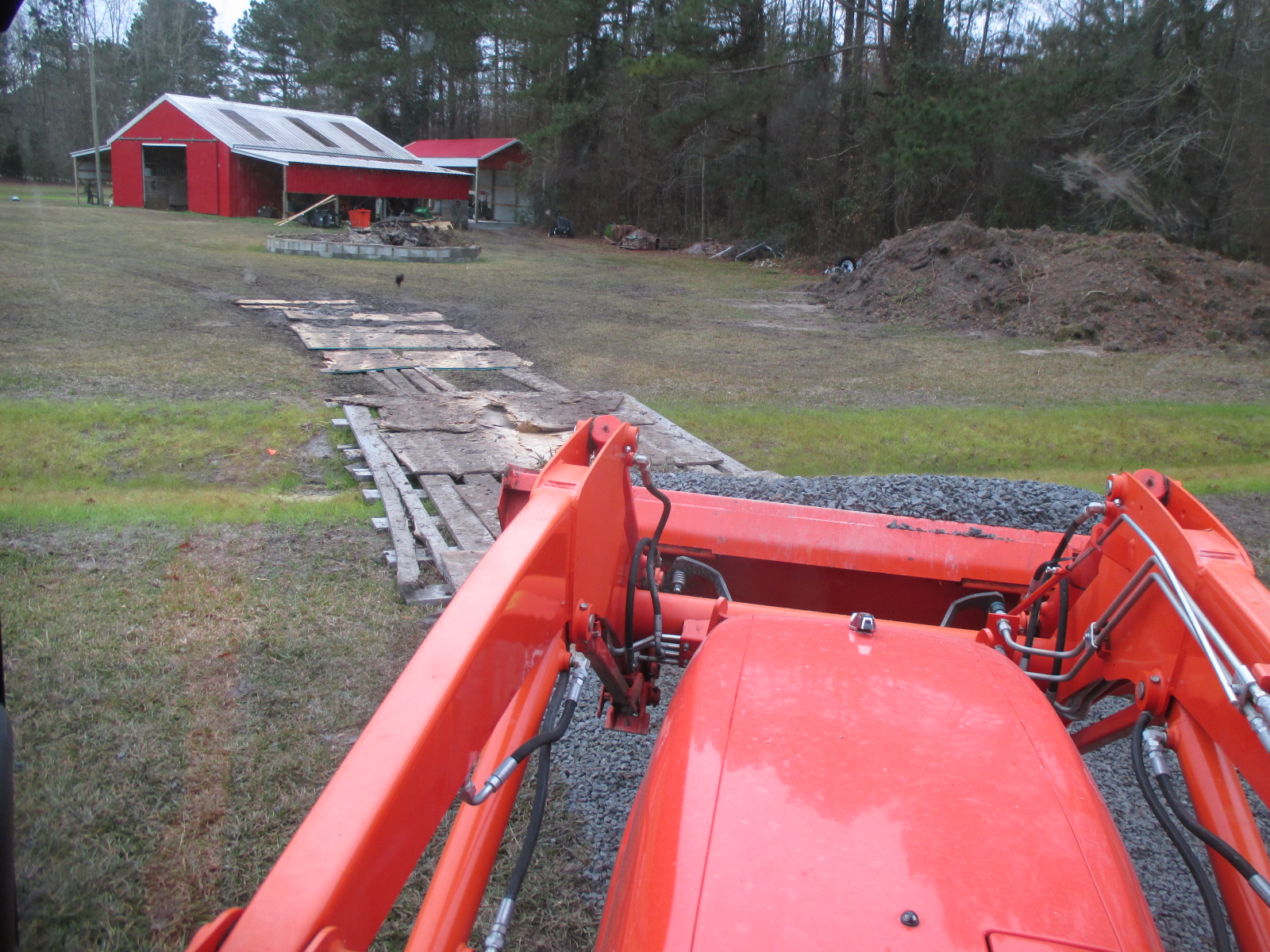 Got some stone down in the muddy area only temporary to push the precip about to come down over to the drainage ditch. If I drove a tractor on it I'd bury a tire.