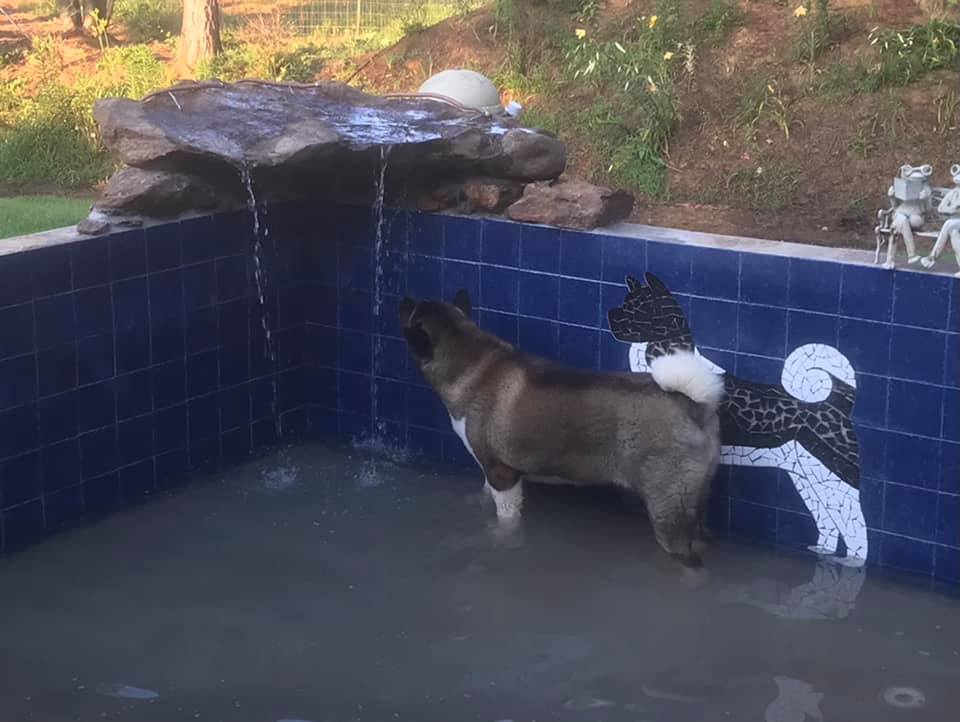 Kenschi is one of our puppies that will be 16 months old on the 19th. She is around 100 pounds and a little chunky. She is the first to try new things and the one that likes the water the most!!!