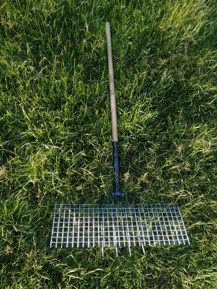 Next I was thing about making some kind of cage that I could pull over the bottom when I found a few offcuts of 1" weld mesh in my scrap pile. Not enough for a cage, but maybe a simple flat sheet would give the stems enough support to not break. No Muck machine, but I do have a muck fork and with a few zip ties to hold them together, it was time for another paddle.
