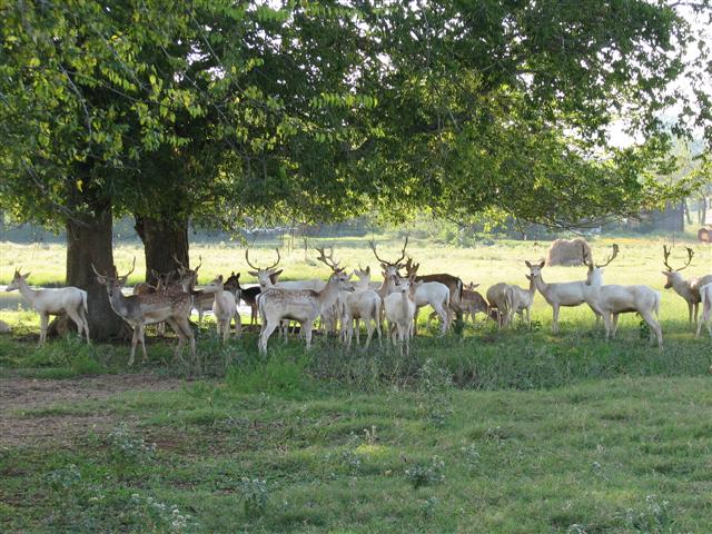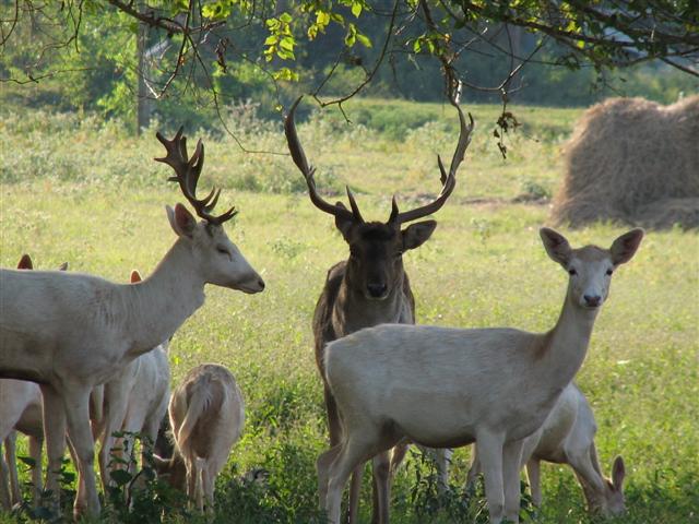 The pictures are from here. The fallow deer are in a 20 acre preserve and raised for meat, with the bigger bucks being sold to hunting ranches. There is another ranch that has a few hundred acres devoted to fallow deer production near that one, but it's harder to see the animals and get pictures. He has hundreds of does out in the open, but his breeder bucks are in a pasture that are hard to see.