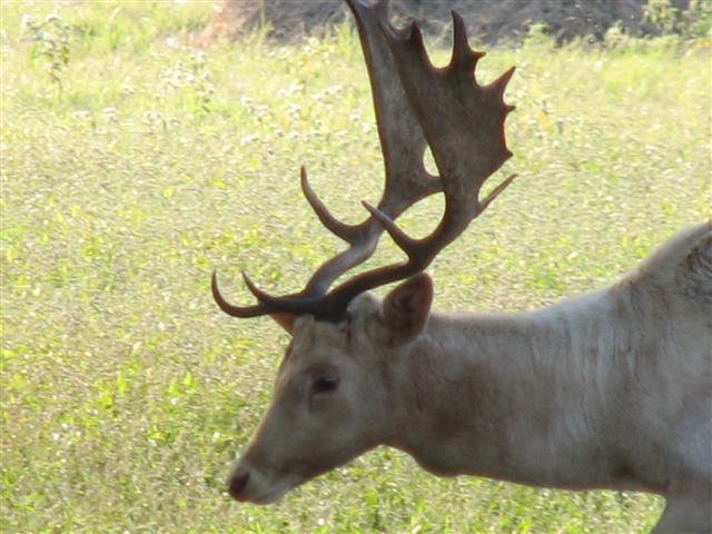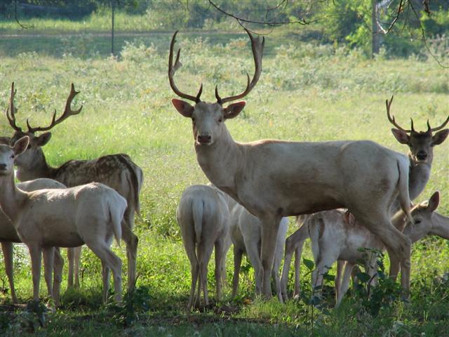 There are a few different species of fallow deer, but they all come in three color phases. White, chocolate and spotted. The white tend to have the largest antlers. The chocolate also have spots, but are a much darker color then the spotted fallow deer.