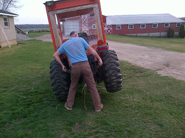It's easy to get a tractor on 3 or 2 wheels. I'm moving a heavy sweeper and have nothing on the back.