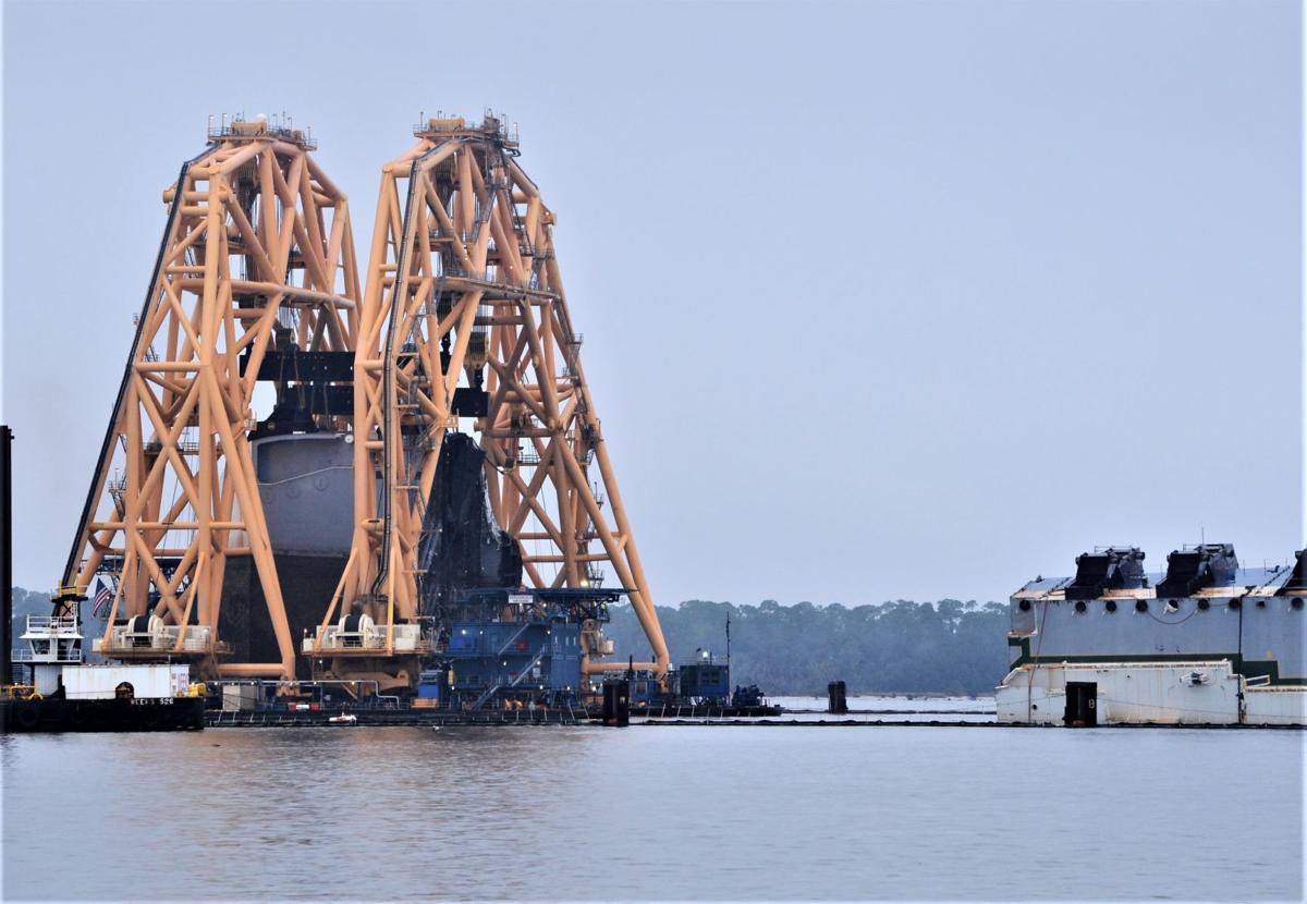 That's the golden ray off St Simons island not far from where I live.. that's been a mess.. Better pic of that massive crane used Update: First cut on the shipwrecked Golden Ray complete | Local News | The Brunswick News