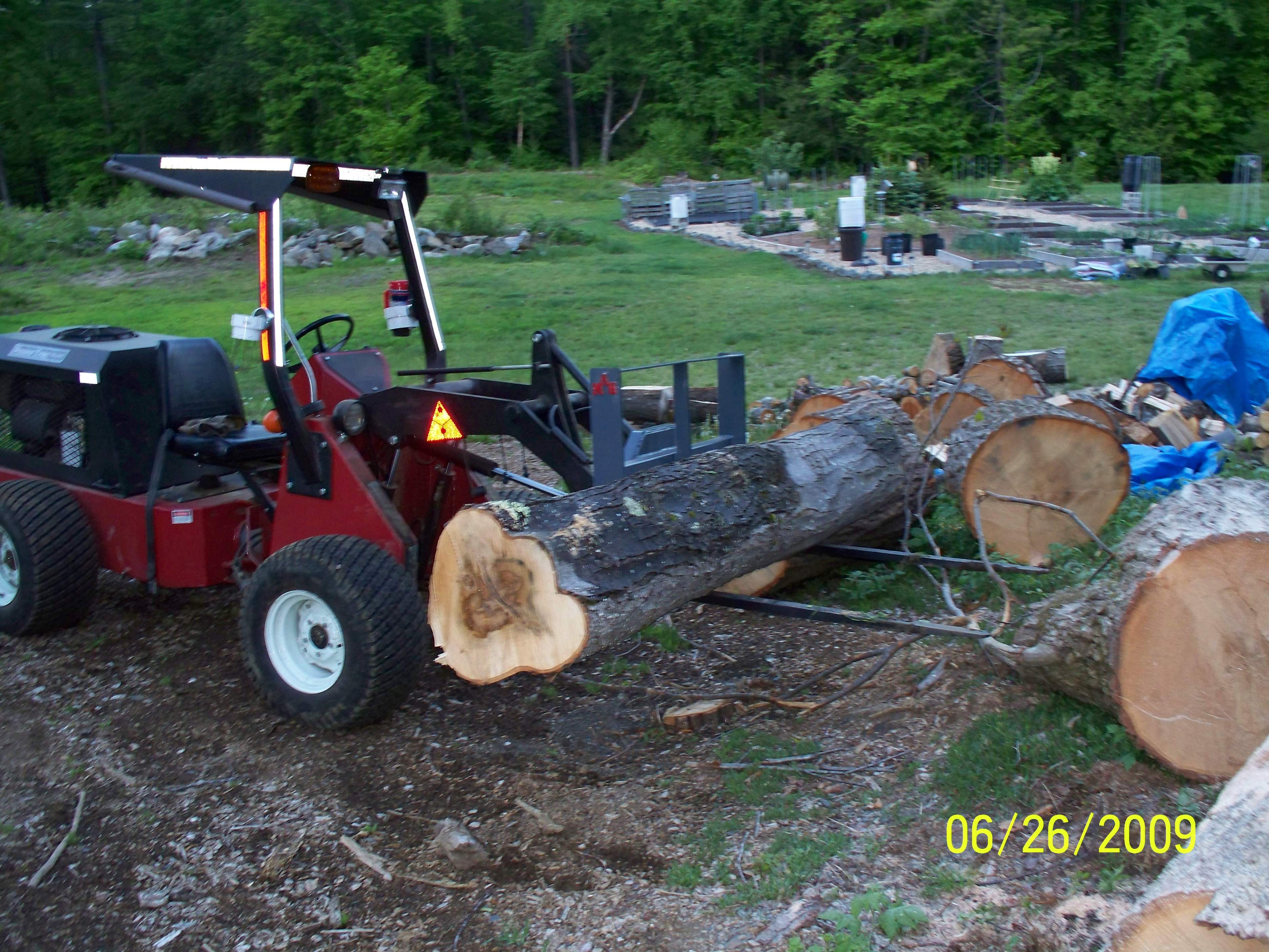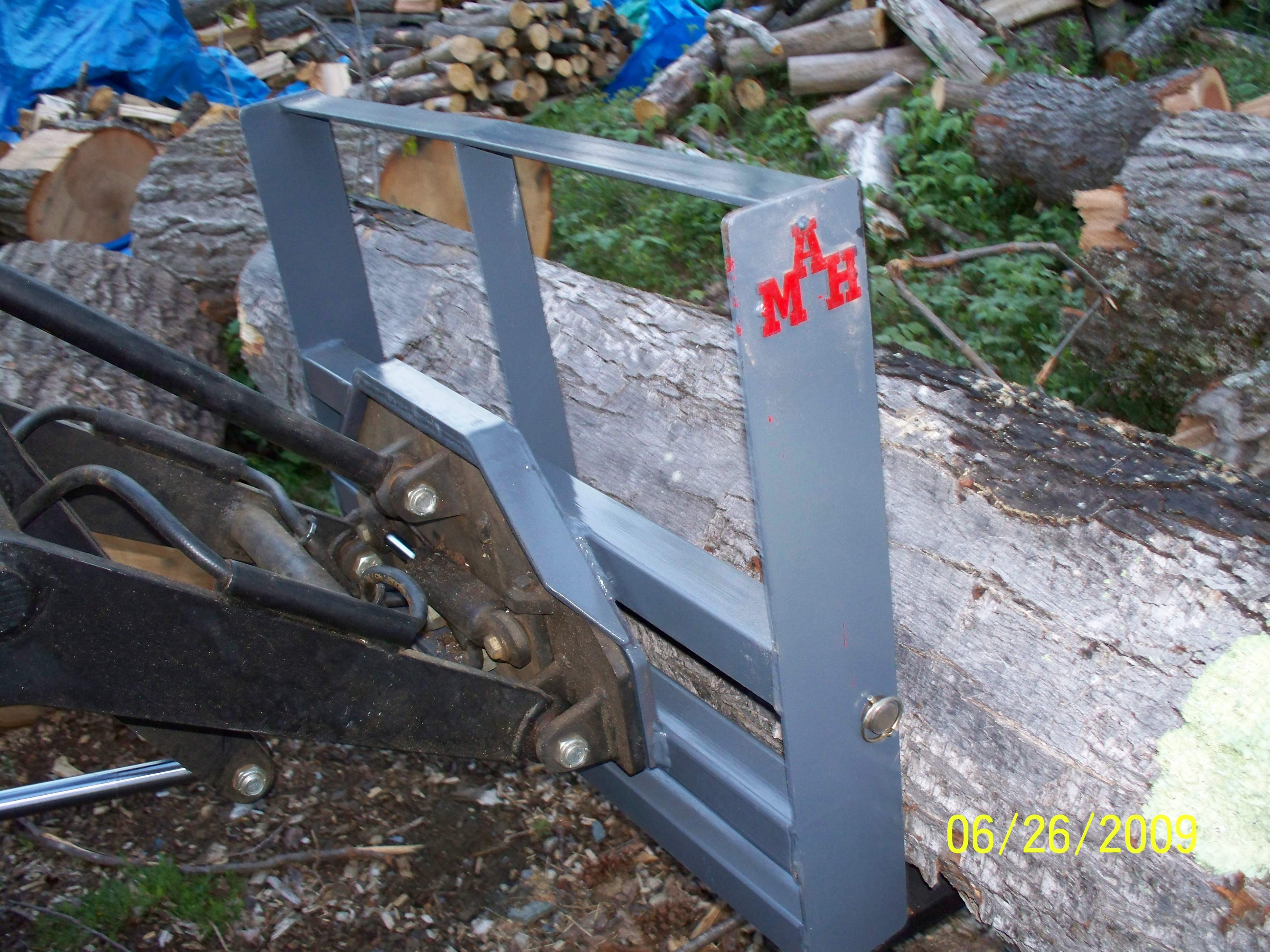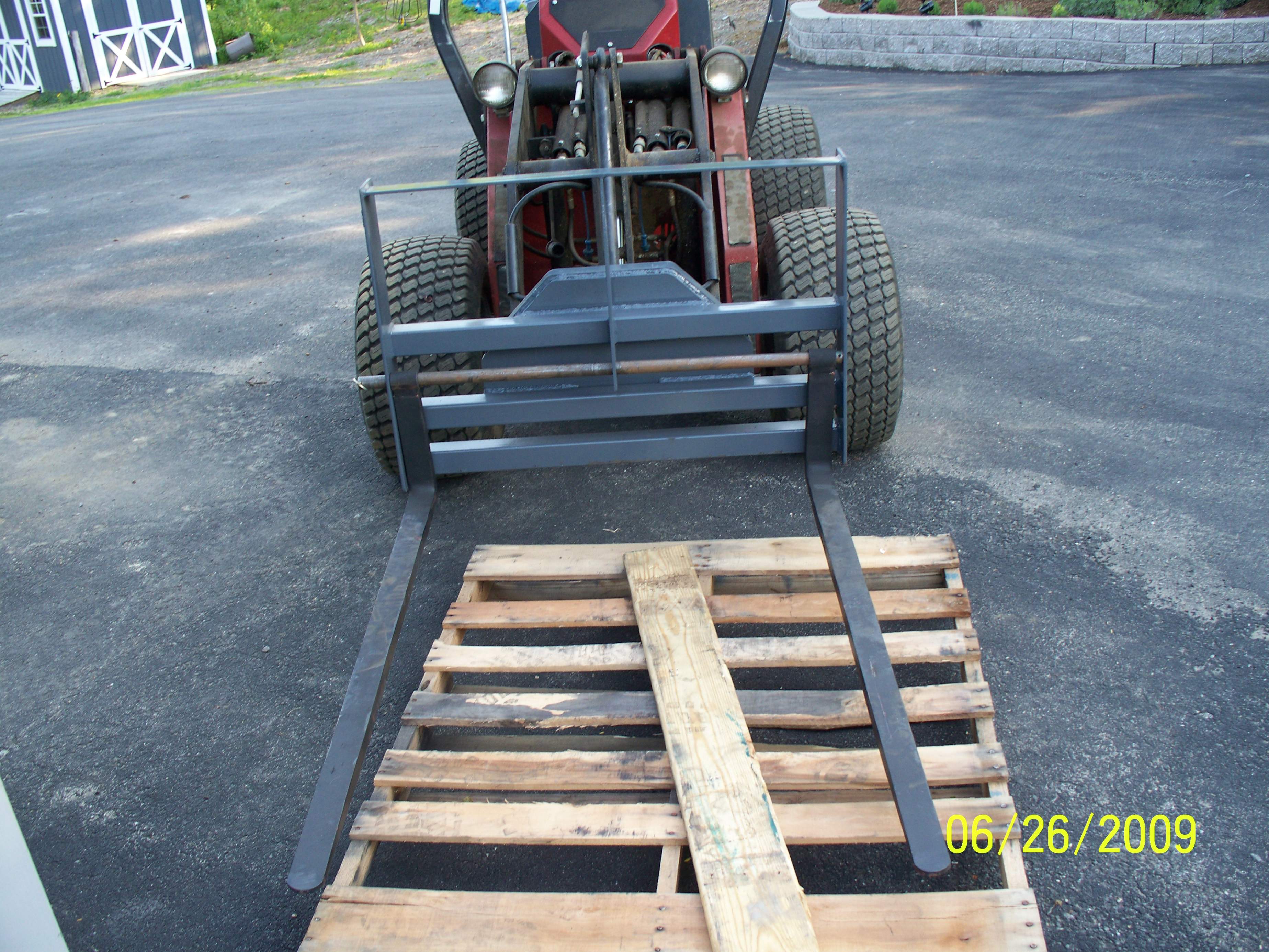 well i finally got the fork lift attachment from the company i posted about. They are rated for lifting 900lbs which i think will be enough for me or my wife to lift stuff with. It cost $400 for the forks and back $165 for them to weld the QA plate on it and $125 for the QA plate so for a total of $690 i got a decent set of forks. I have used them today to move some logs that i will use for firewood.