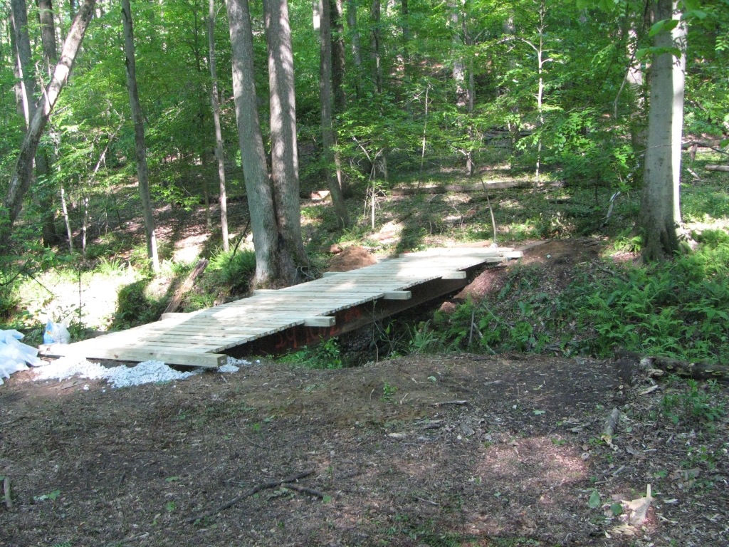 What do you figure the weight limit is for machinery crossing the bridge ? If I built one I would check into a flat bed semi trailer and trim to size. That way I could get the bachhoe over it without holding my breath. Not as scenic as yours but a little more rugged. Did you have to get any permits ? Where I am they require a couple, county and DNR. Seperate permits for each crossing on the same stream. Costs are in my opinion outrageous.