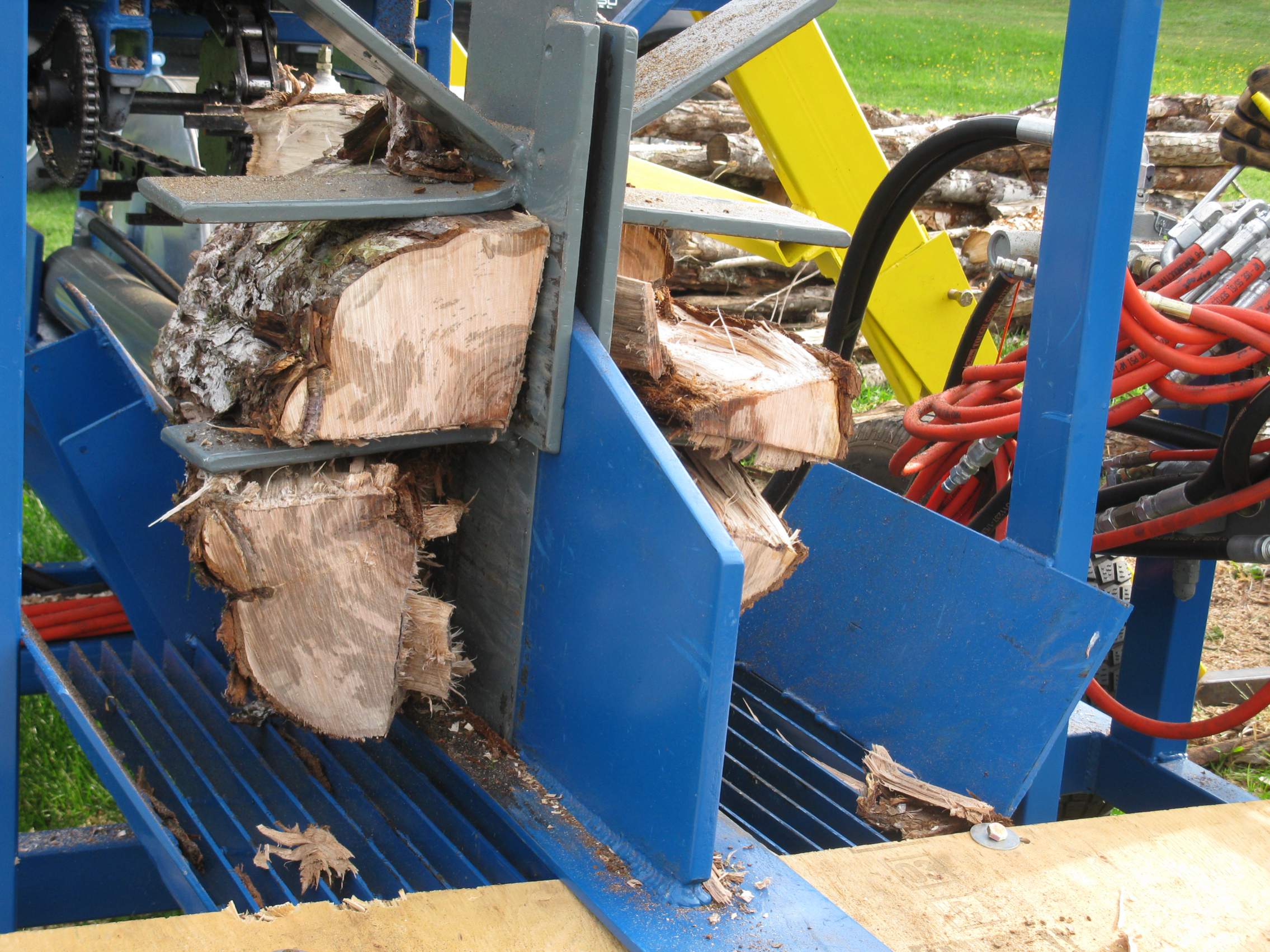 I am building it with three of my neighbors. We're all hoping to cut down on a little bit of our labor this upcoming year. If everything goes as planned, with 24" logs (not typical) and a 60 second cycle time (hopefully generous) this thing could shoot out 3.5 cords per hour.