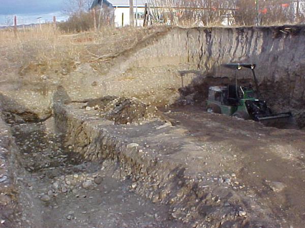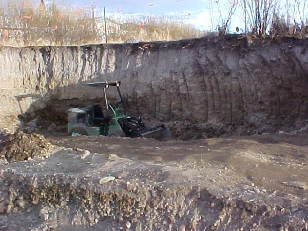 To top it off, I had to rip through frozen ground to really make any headway. I have one more foot to go down and 5 feet more in width. Finding few places left to dump the dirt for storage until later.